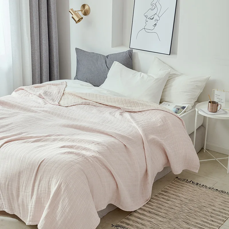 Муслиновое одеяло Junwell, 100% хлопок, дышащее простое покрывало для кровати и дивана, однотонная Большая мягкая накидка в японском стиле, для путешествий