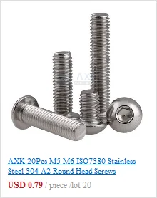 AXK 20 шт. M5 M6 ISO7380 нержавеющая сталь 304 A2 винты с круглой головкой шестигранные винты с шестигранной головкой