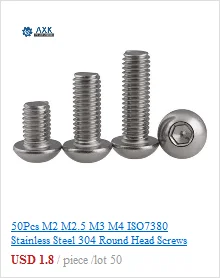 50 шт. M2 M2.5 M3 M4 ISO7380 из нержавеющей стали 304 Винты с кругл...