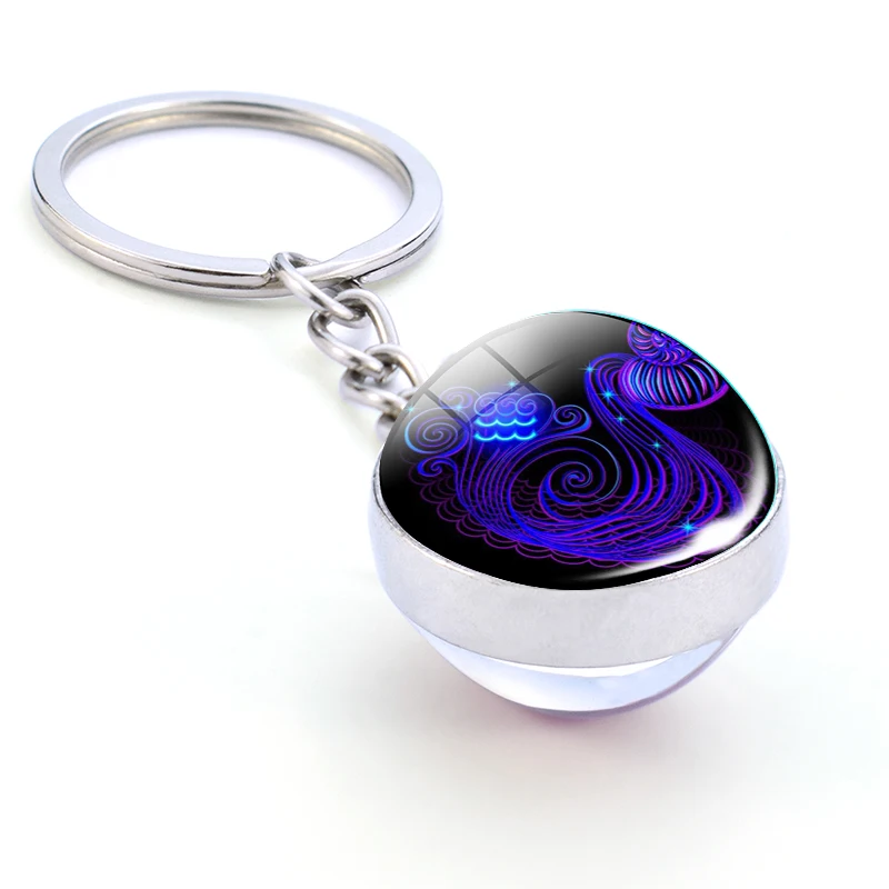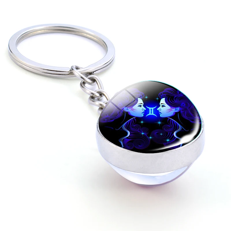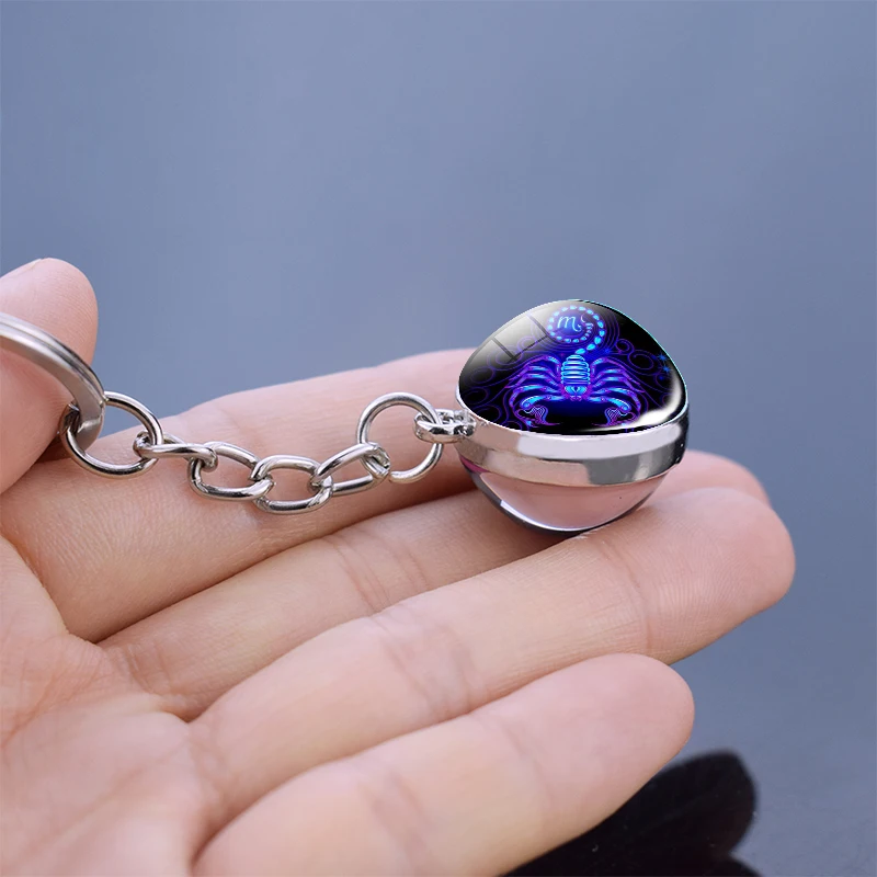 Брелок со знаками Зодиака, со стеклянным шаром, для мужчин и женщин...