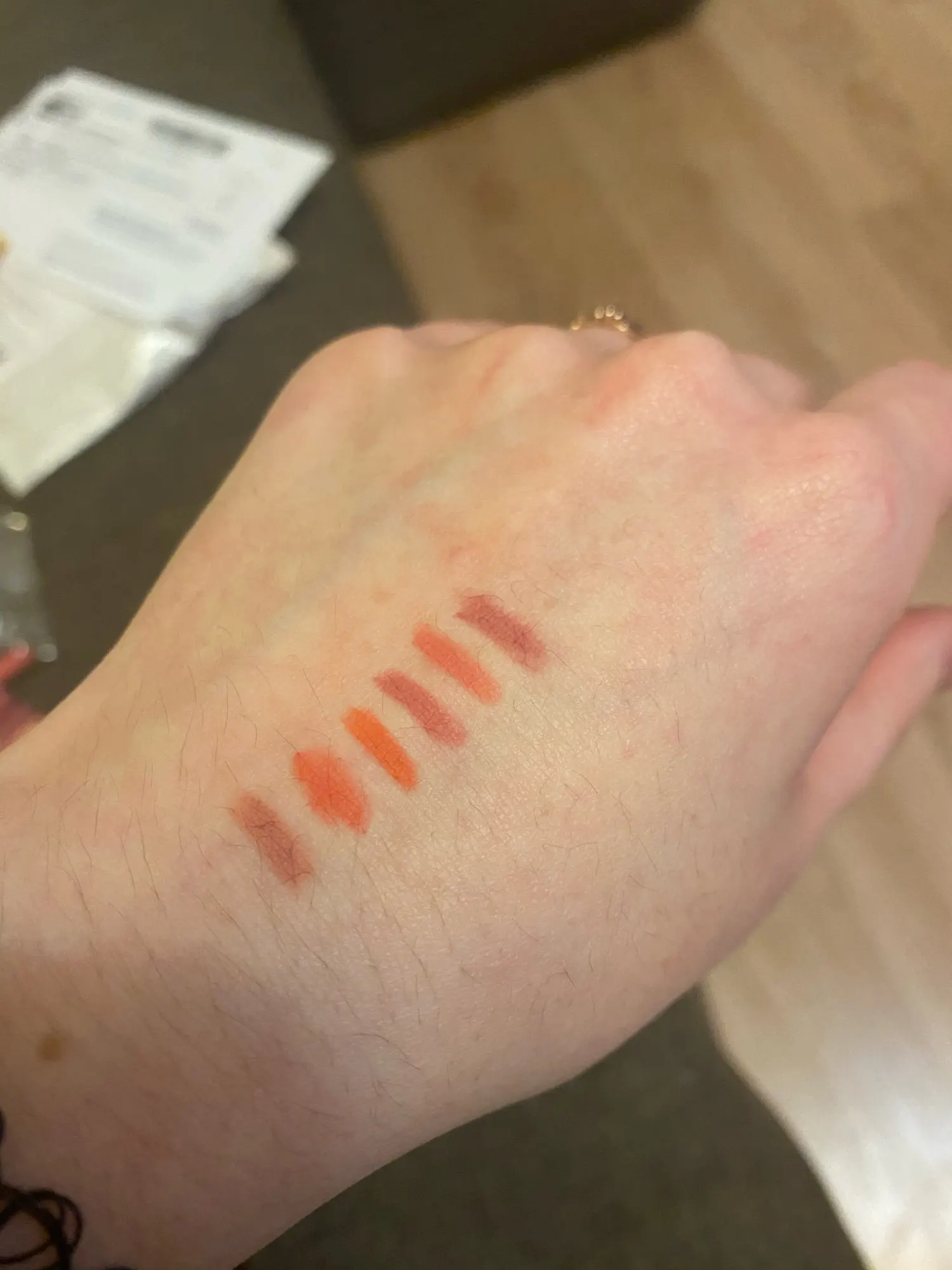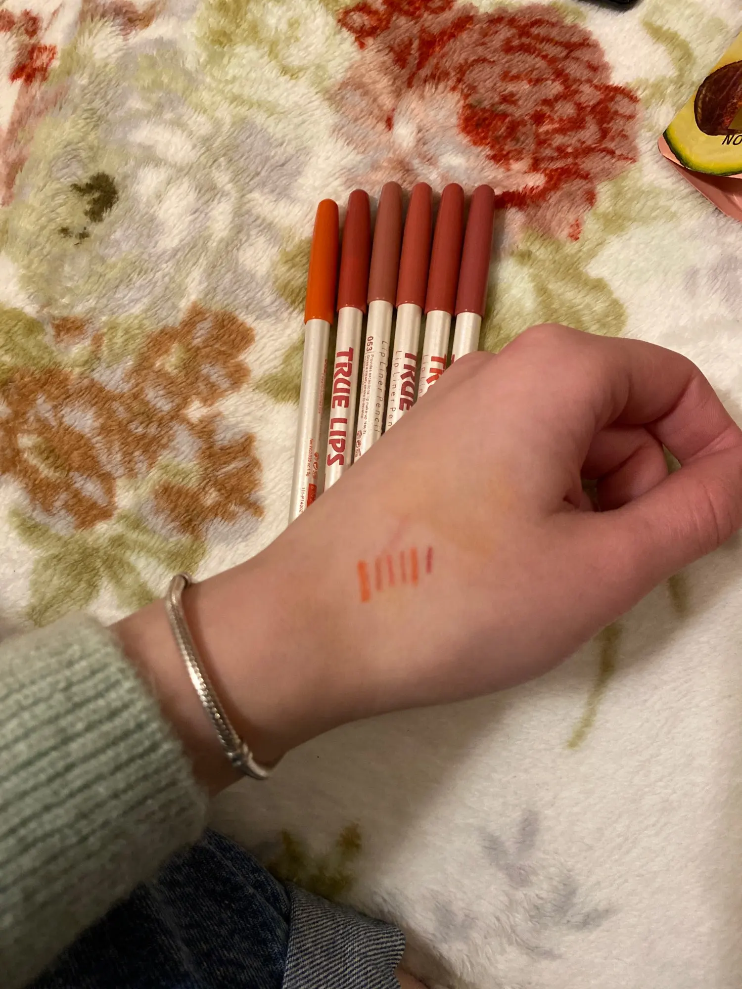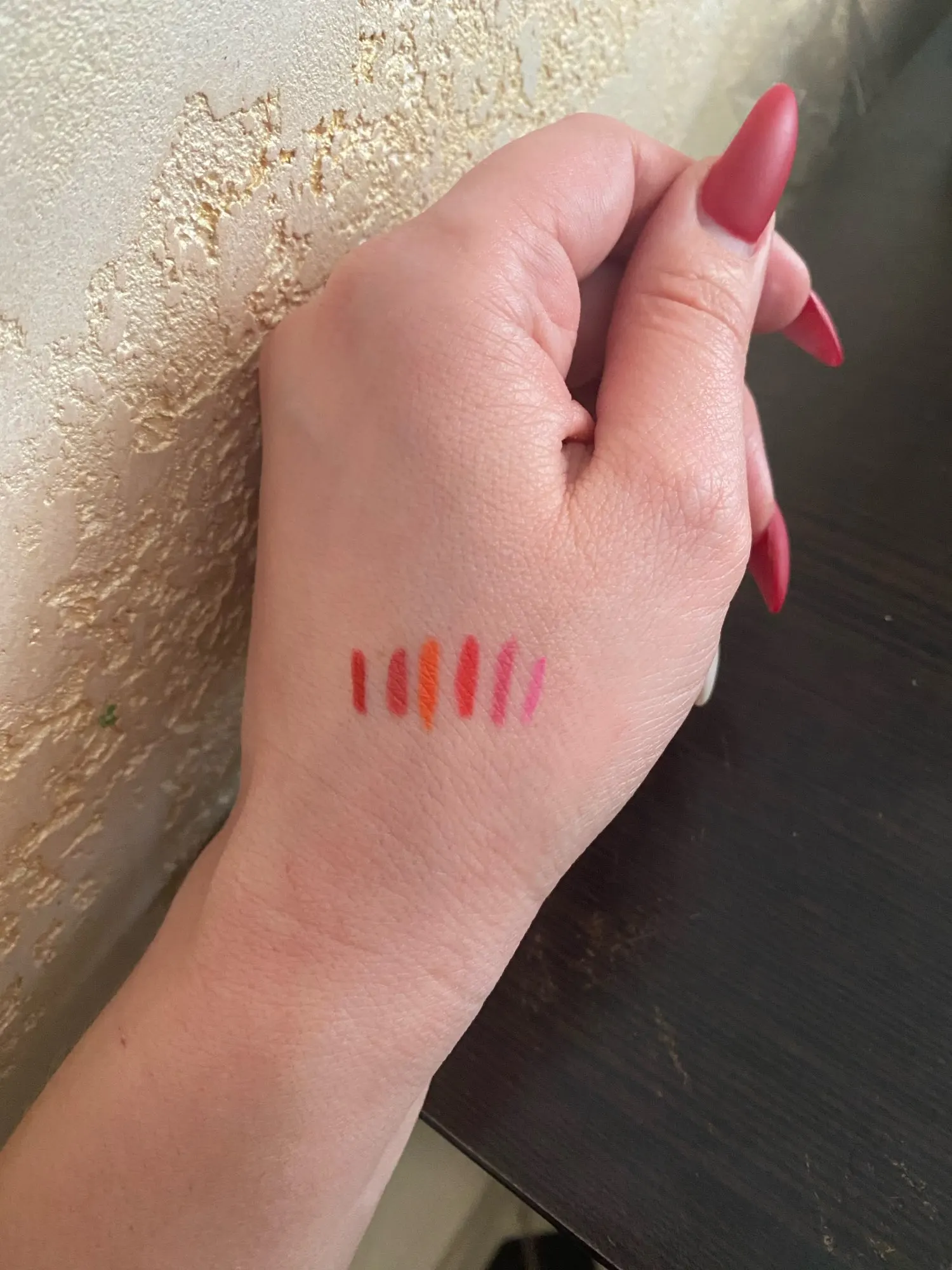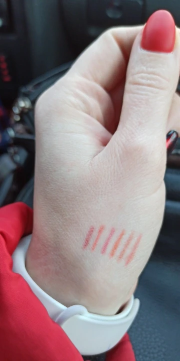 очень долгая доставка. сначала не понравились карандаши, тяжело наносятся, а потом понравился этот легкий эффект, не люблю ярко выраженные губы)