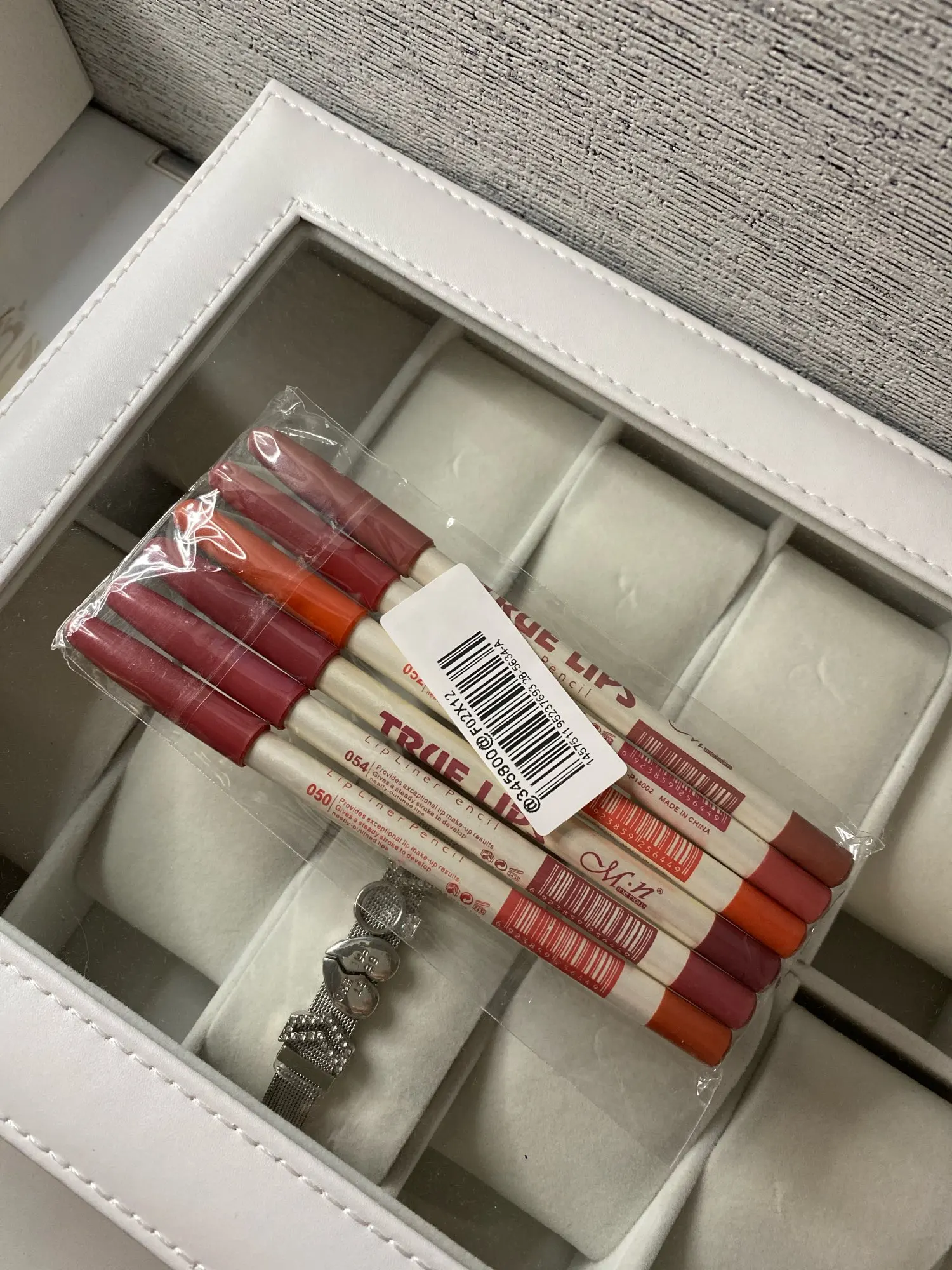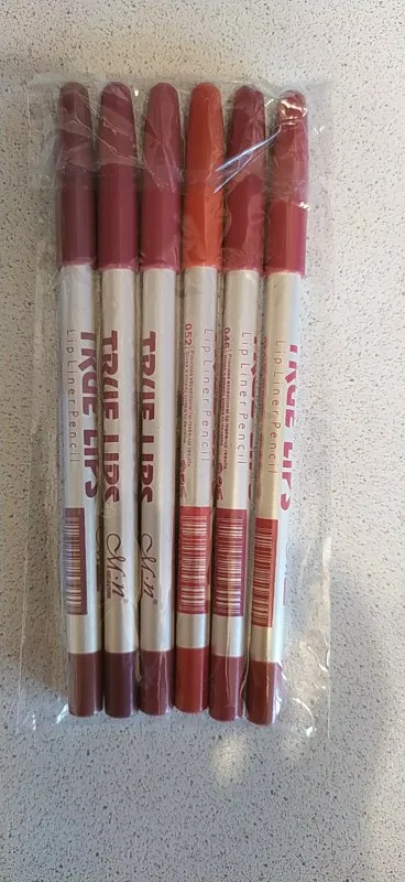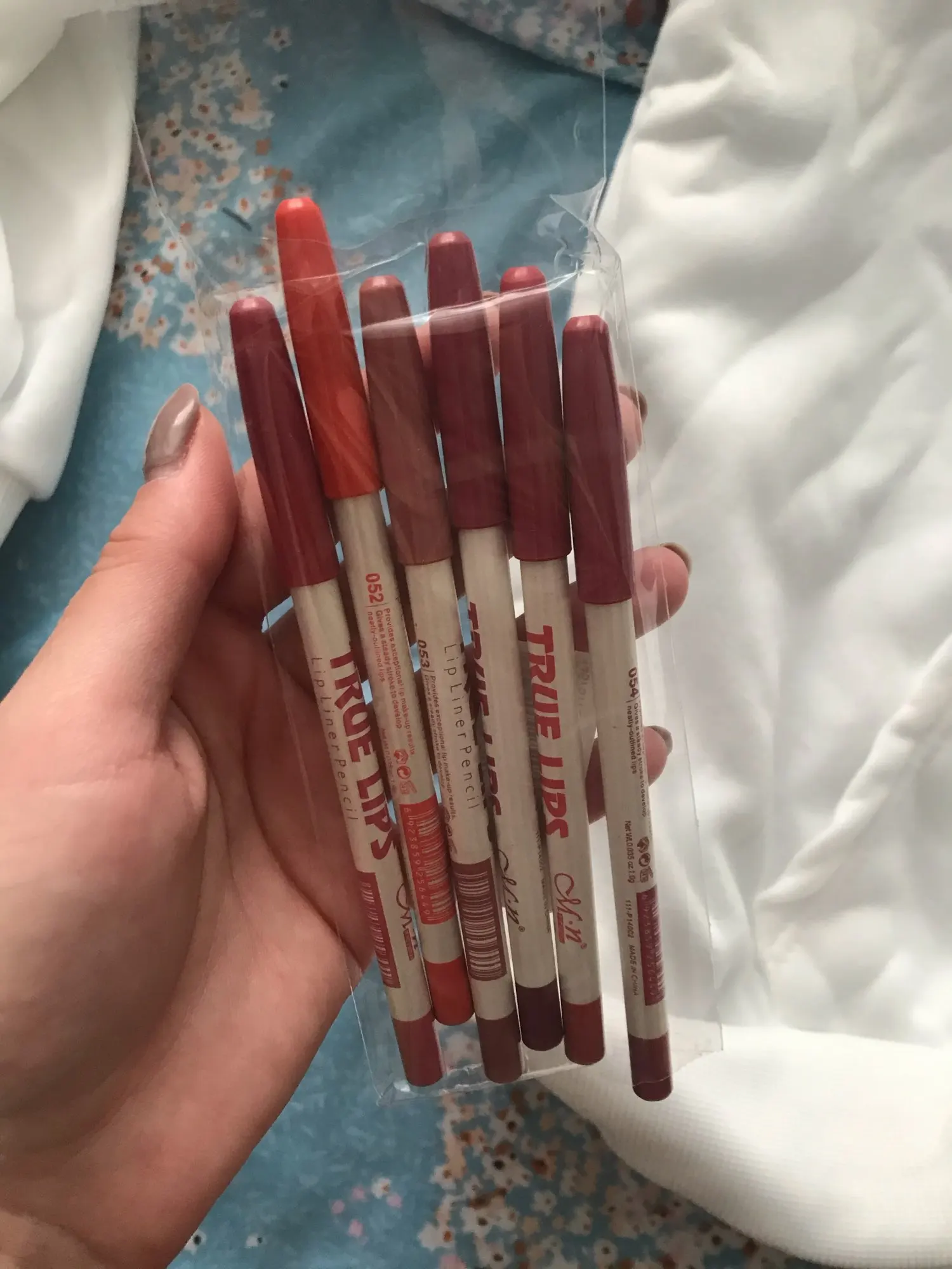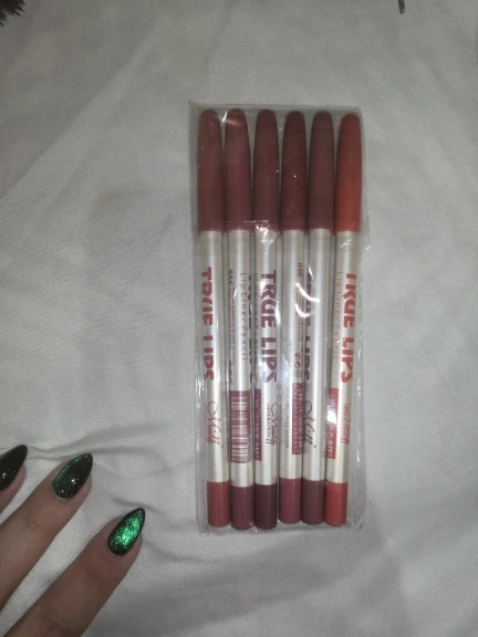 Ооочень долгая доставка. Товар получила через 2 месяца. Все соответствует описанию. Мне показалось, карандаши твёрдые, не очень ярко рисуют на губах. Товаром довольна. Спасибо продавцу.