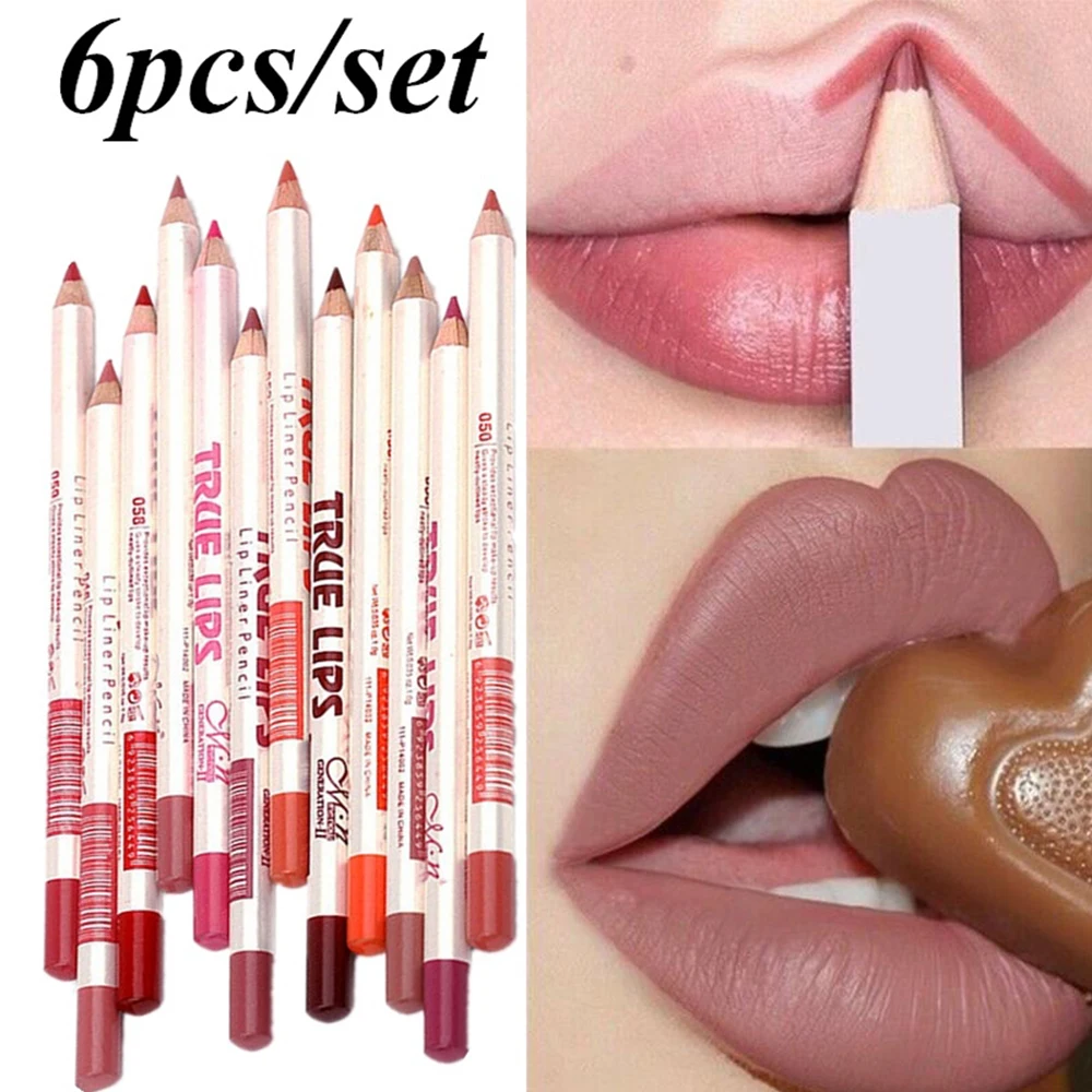 Профессиональная деревянная Водостойкая Подводка для губ, 6 шт.компл.