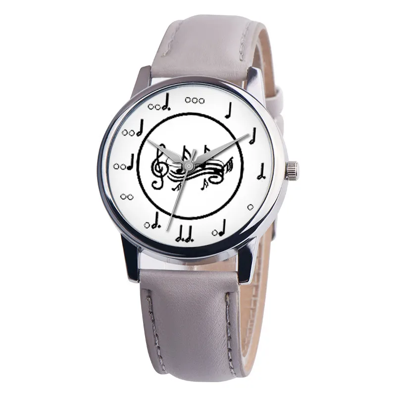 Часы наручные унисекс с музыкальными нотами женские, аналоговые дамские часы с кожаным ремешком и двойным круглым циферблатом, из сплава