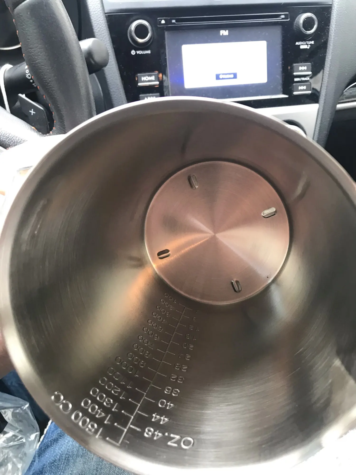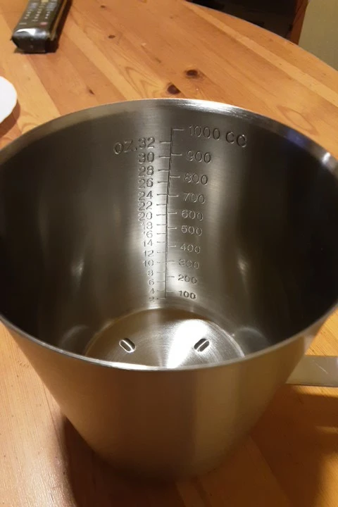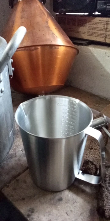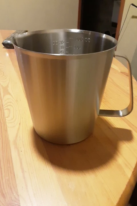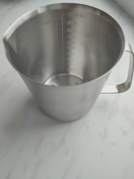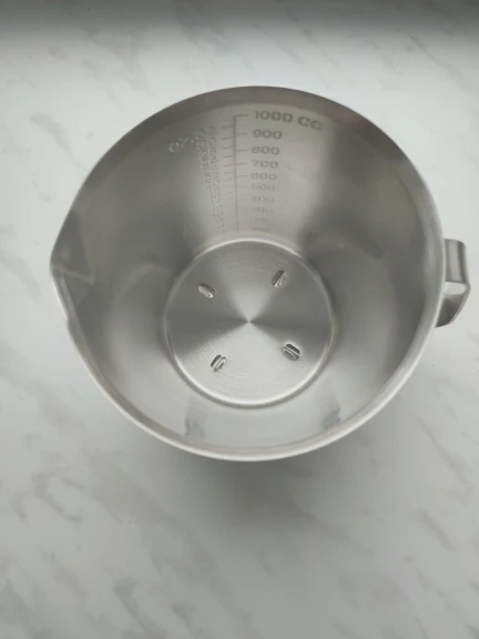Отличный мерный кувшин из нержавейки. Прочный за счёт толстого металла, шкала в мл и oz.
