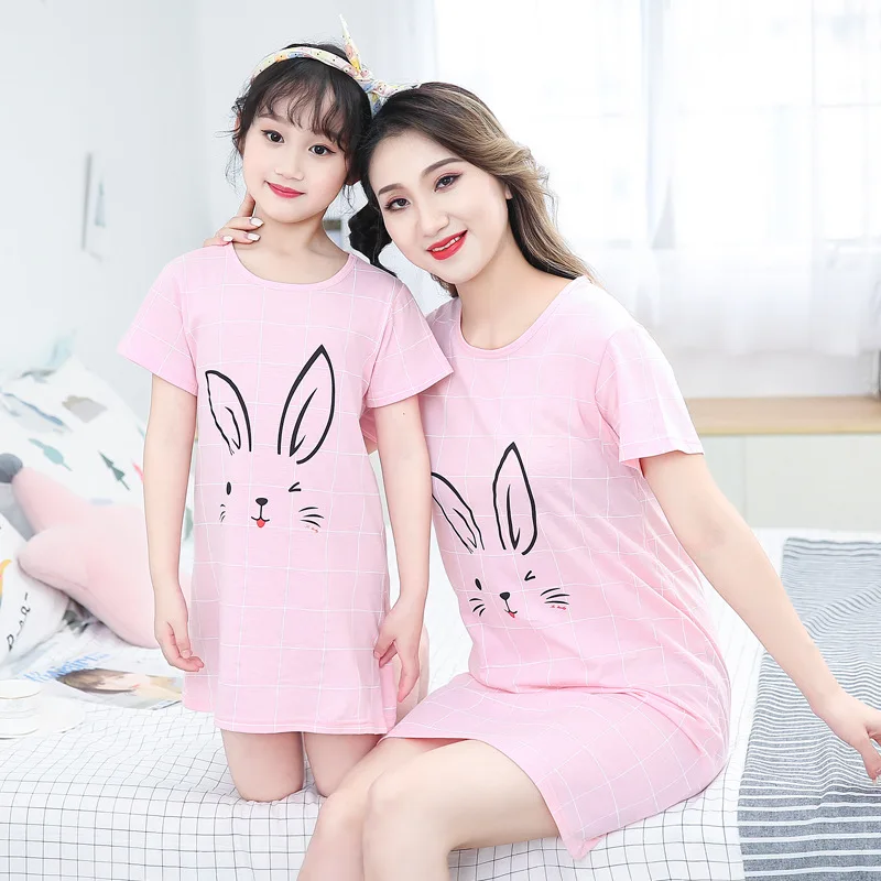 Ночная рубашка для мамы и дочки, хлопковая, повседневная, домашняя ...