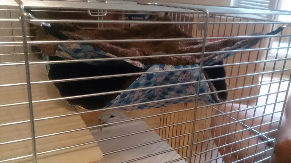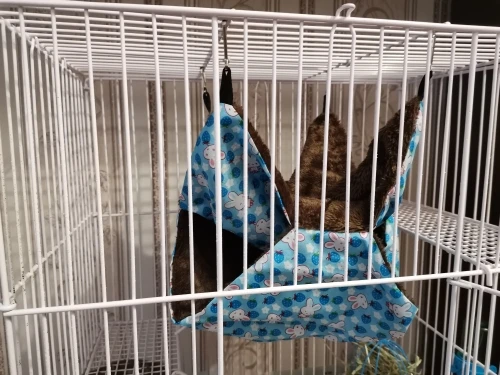 Хороший гамачок, шиншилле в самый раз. Но карабины на тесьме, которую грызуны быстро отгрызают. Рекомендую вешать на цепочки.