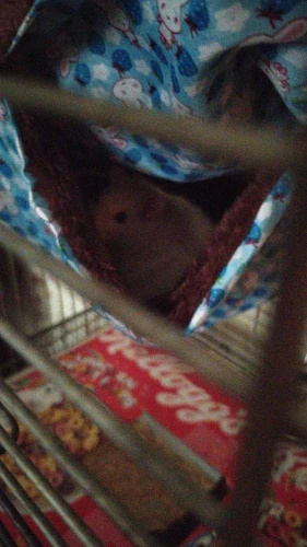 хороший гамак, аккуратно сшит, без посторонних запахов. брала размер L, просто огромный , надо было брать поменьше. 2 подростка-крысы в нем просто потерялись )