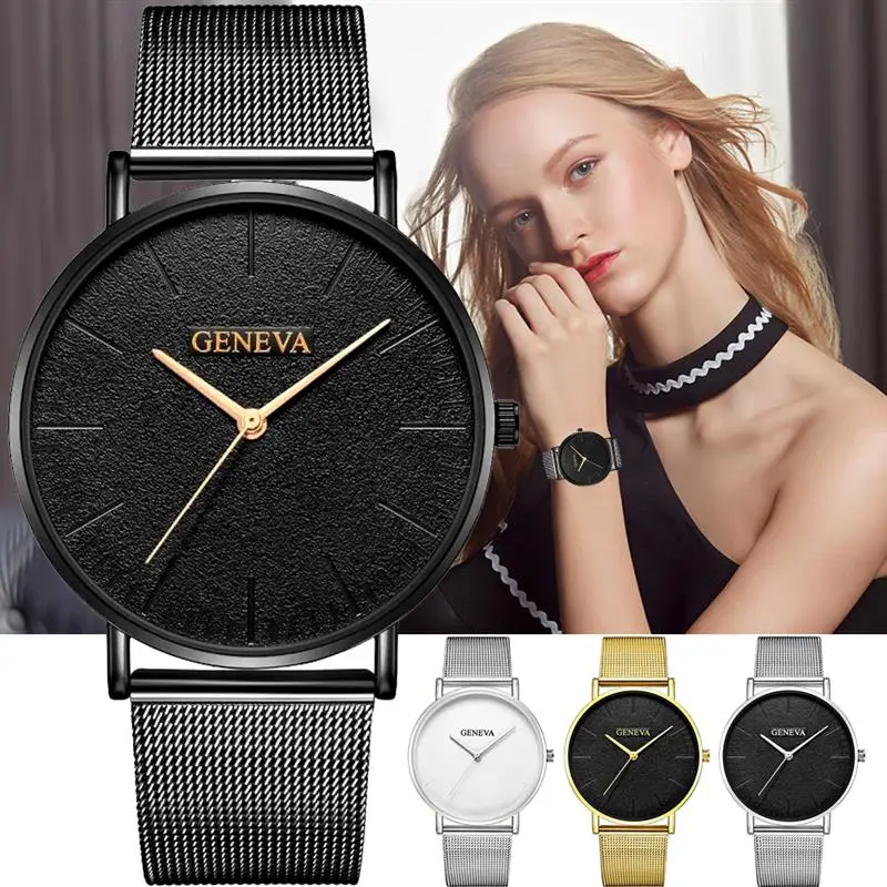 Женские часы Geneva, модные, деловые, кварцевые, аналоговые, из нержавеющей стали