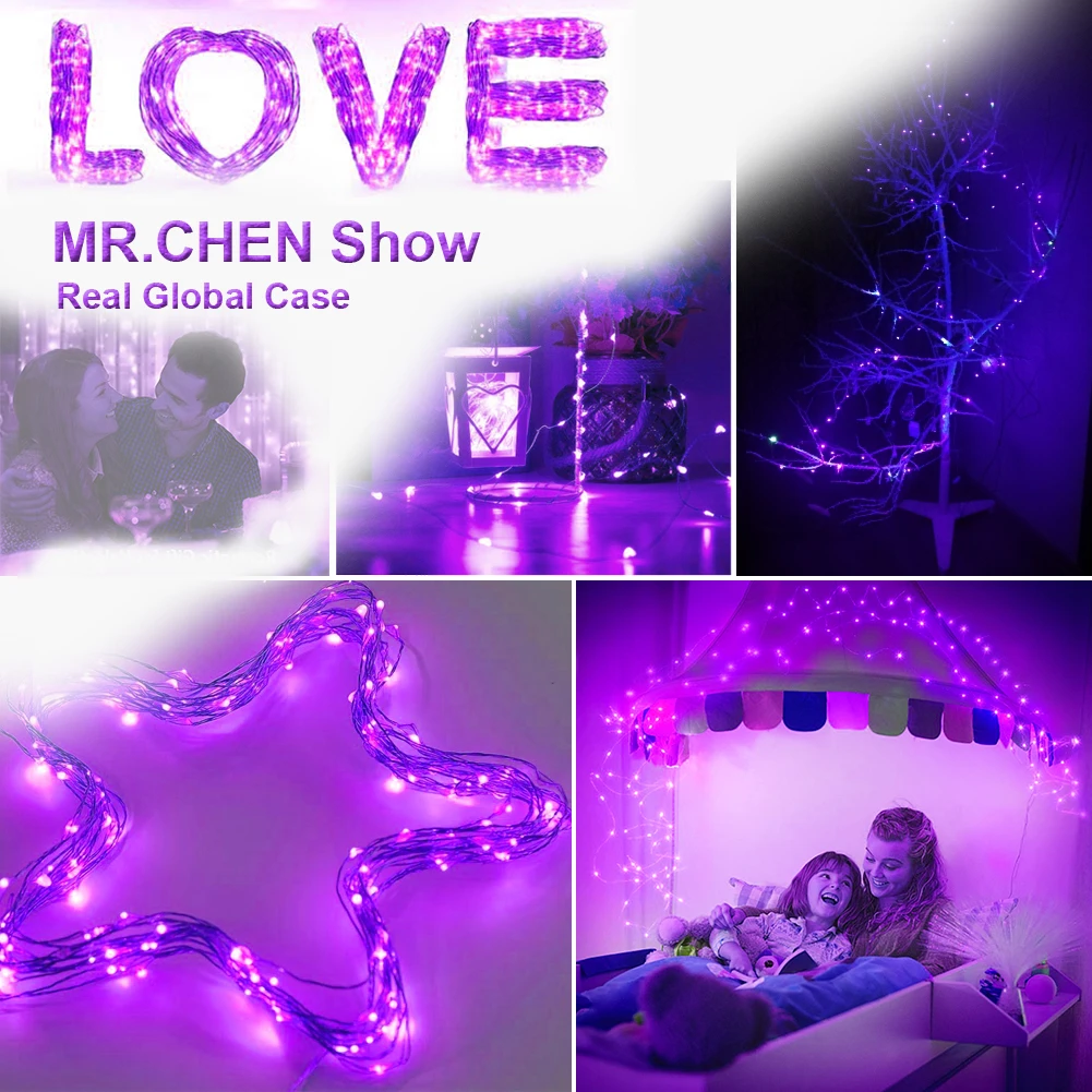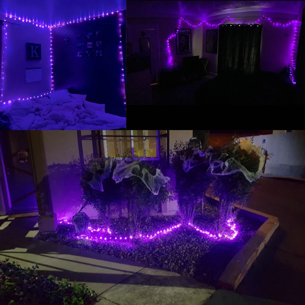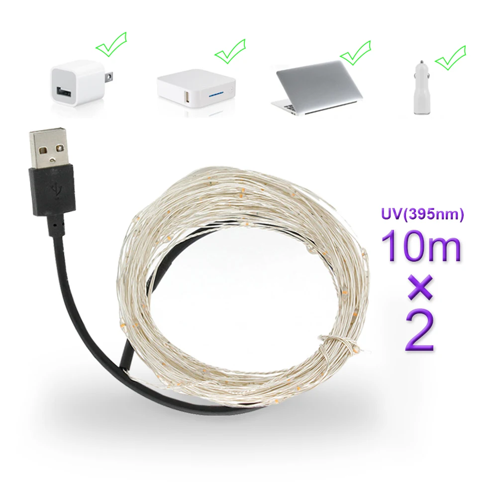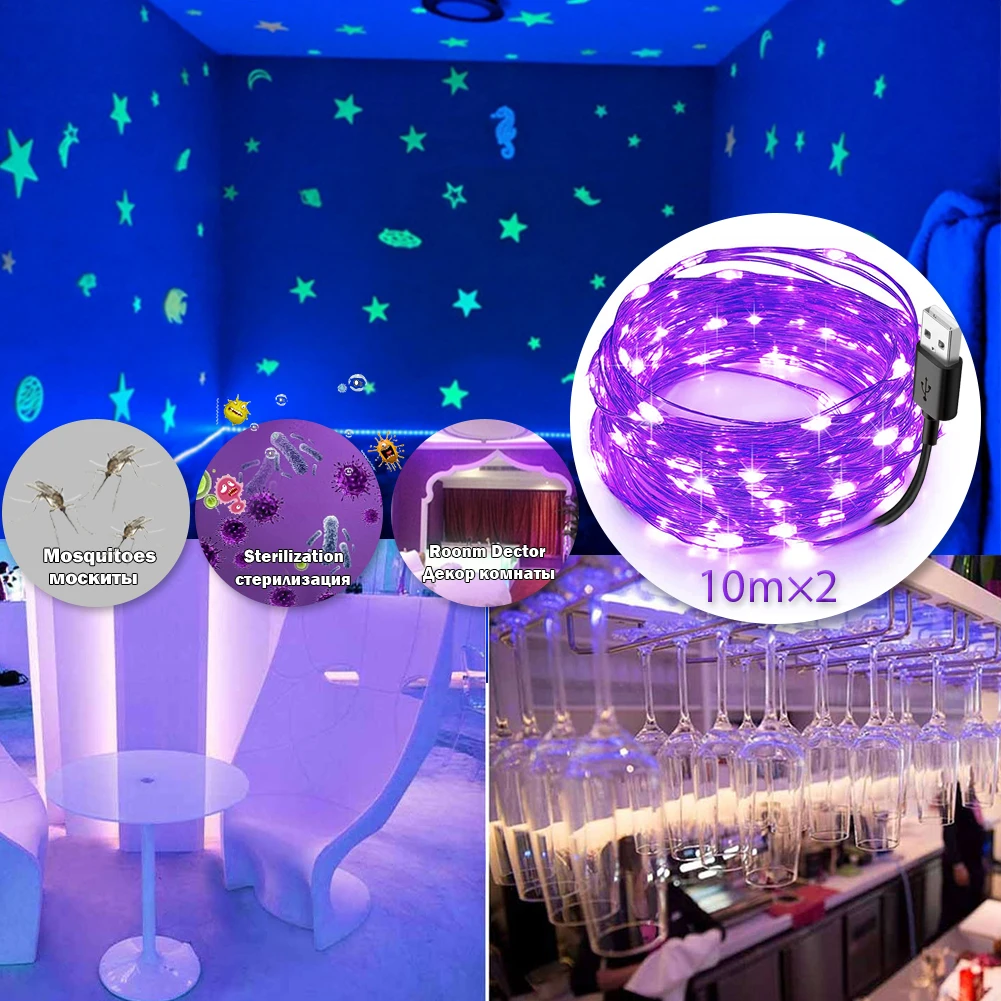 Светодиодный УФ-шнурок с черным светом, водонепроницаемая лампа сделай сам для дома с бактерицидными привидениями, USB-шнурок для рождества, Хэллоуина, бара, ультрафиолетовое Освещение для дома с 20 м