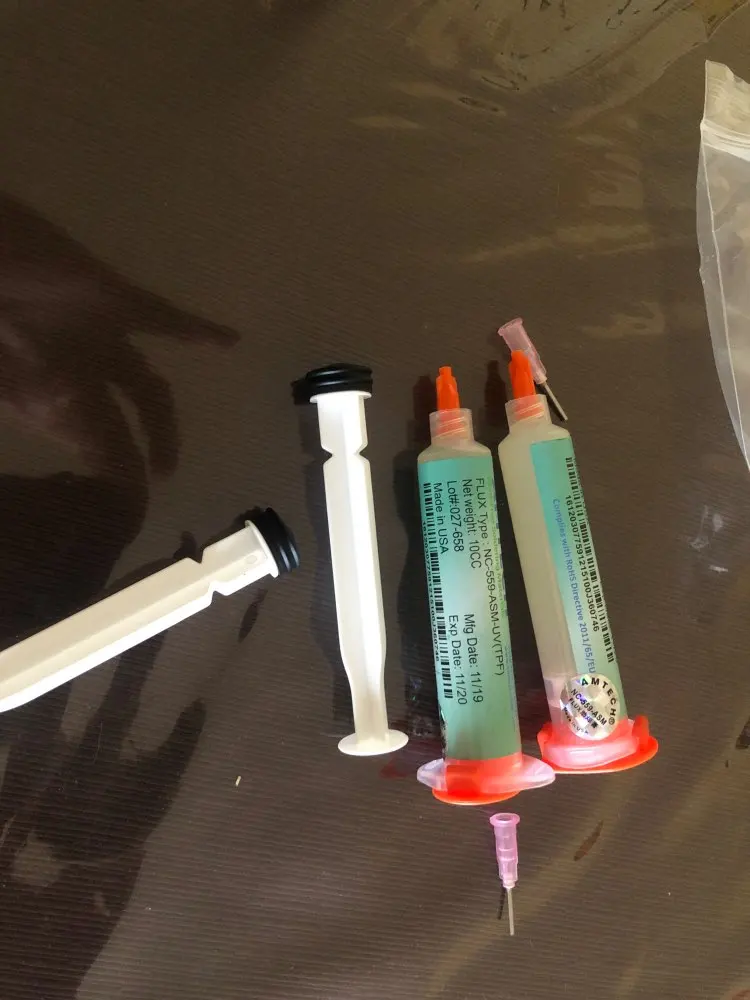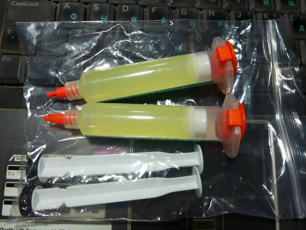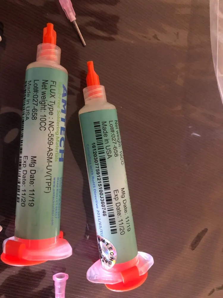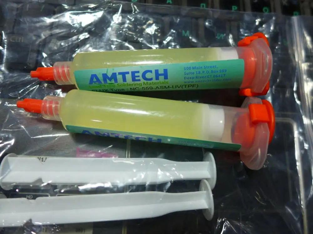 Фуфло полное! Шприцы заполнены до разного объёма, этикетки кривые, в уф лучах флюс не светится. Пробовал залудить обычный многожильный проводок – от нагрева флюс сразу убегает. При 240°С (замеренных) залудить не удалось, а при 290°С - только частично. Другая подделка (AMTECH NC-559-ASM c "Califomia на борту") чуть лучше. А полностью легко справилась лти-120. Как выяснилось, у фирмы AMTECH флюс маркируется "TF" и "TPF", а "ASM" - это паста с оловом. Два месяца доставки мутной компанией без отслеживания по России и без регистрации в почтовом отделении. Получил чисто случайно, упросив работника почты перерыть ящик с подобными посылками. А срок годности истекает через месяц (11.2020).