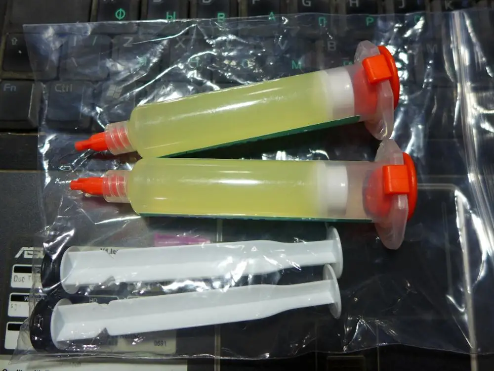 отличный флюс, лудит одно удовольствие, запах есть но не очень едкий, по приятней чем обычная подделка, этот флюс более похоже на вазелин по консистенции