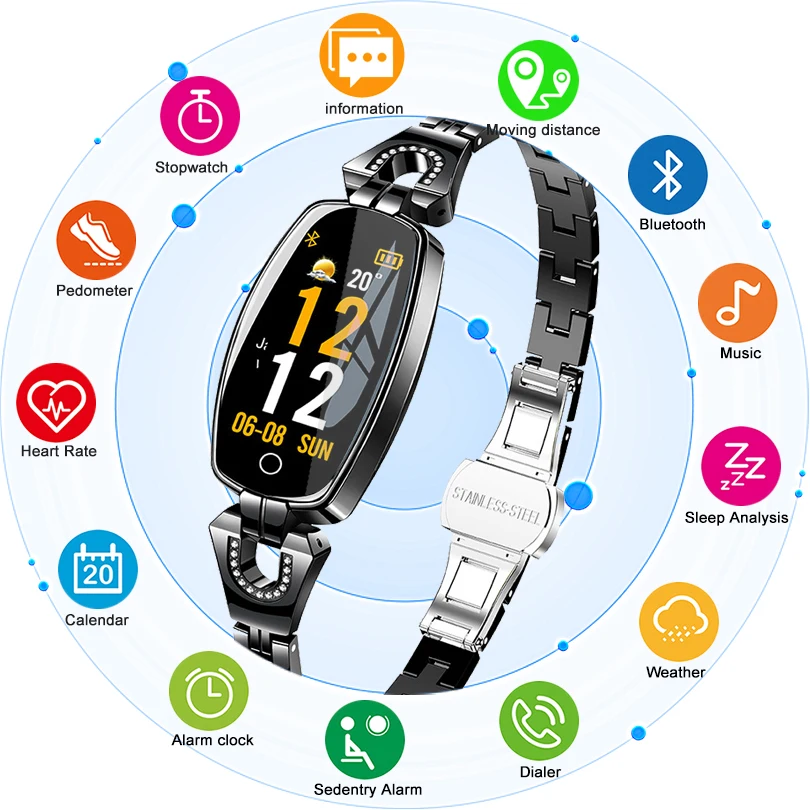CHENXI 2019 новые H8 роскошные женские Bluetooth часы для Android IOS фитнес-браслет умные часы водонепроницаемый мониторинг сердечного ритма