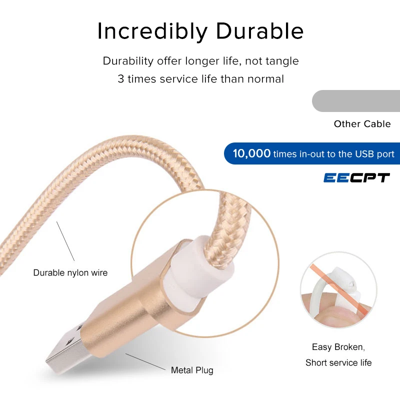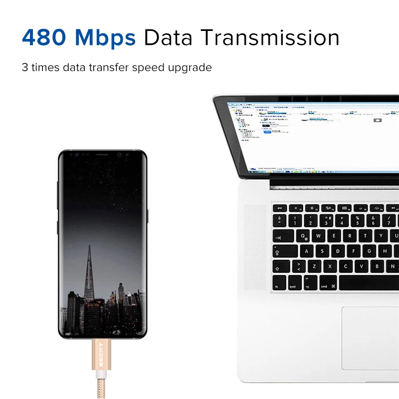 Зарядный кабель EECPT 2.4A Type-C, провод для быстрой зарядки и передачи данных, usb-кабель Type-C для Android, Xiaomi Redmi Note 7, Samsung S10, шнур для передачи данных