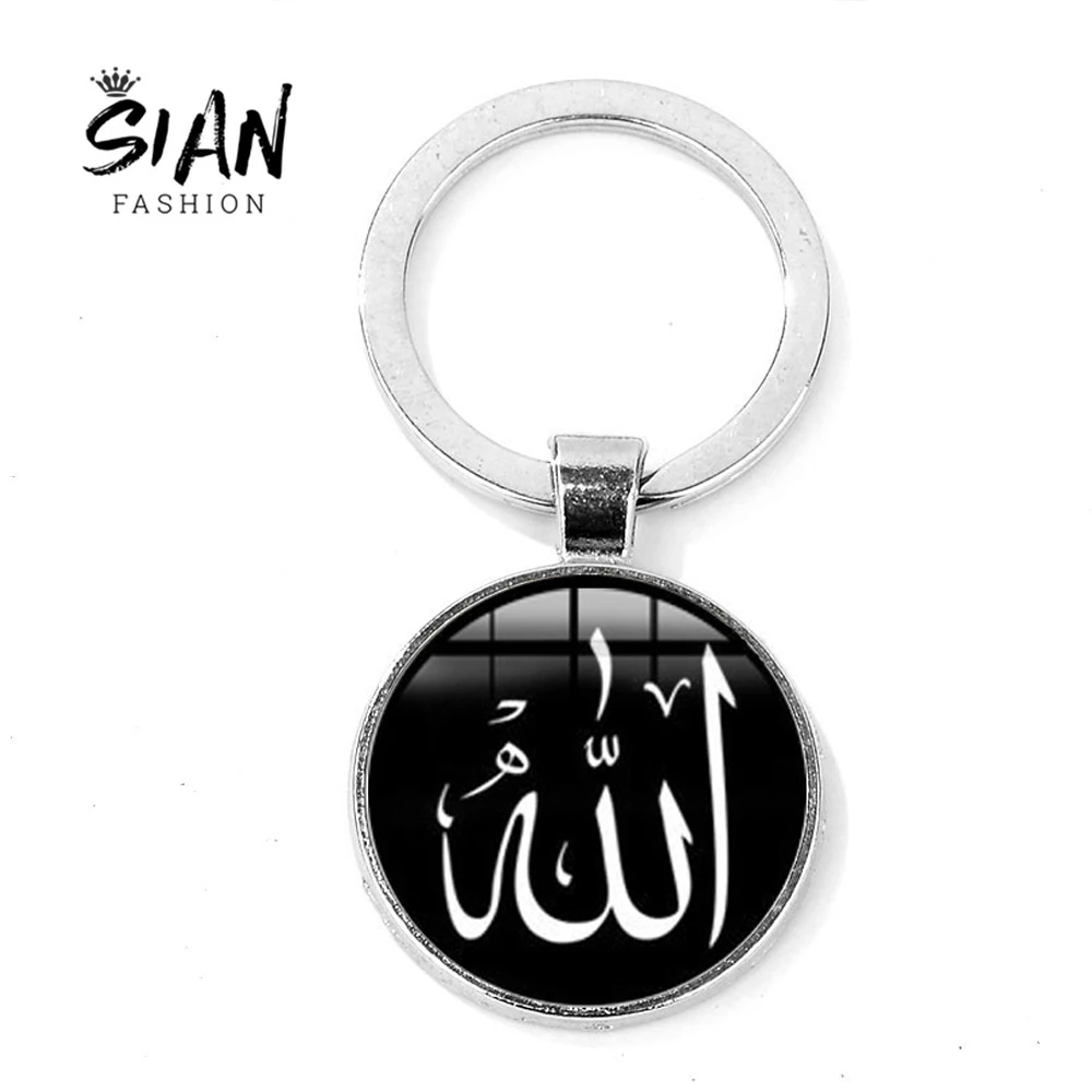 Брелок для ключей со стеклянным кабошоном и подвеской из сплава, мусульманский исламский Аллах