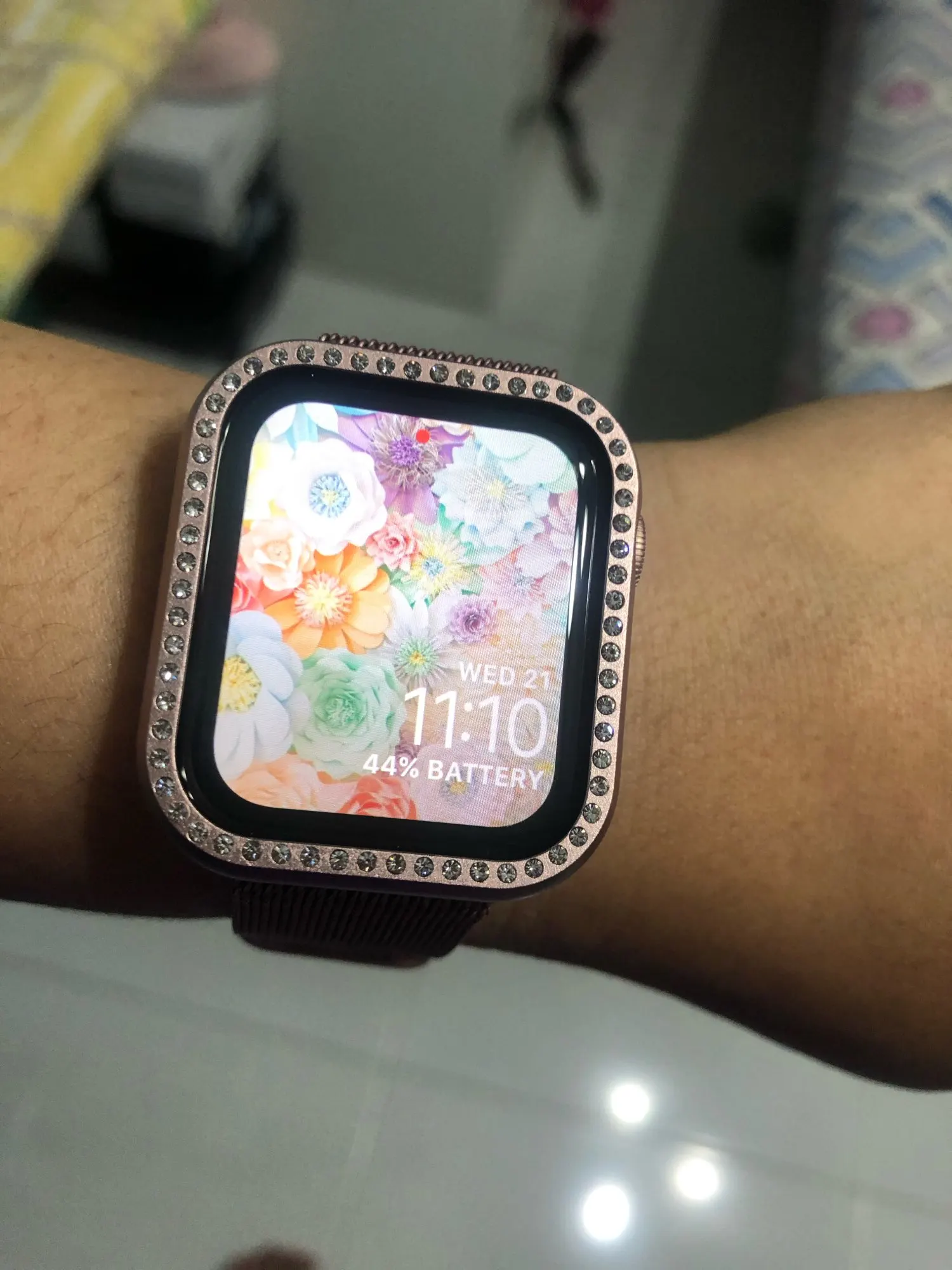 Это заняло больше месяца, и я бы хотел, чтобы продавец мог выбрать другого курьера для ускорения доставки быстрее. Товар, однако, хорошо сделан. Бриллианты блестят и надежно сидят на часах Apple Watch. Я бы хотел, чтобы чехол Покрыл больше площади.
