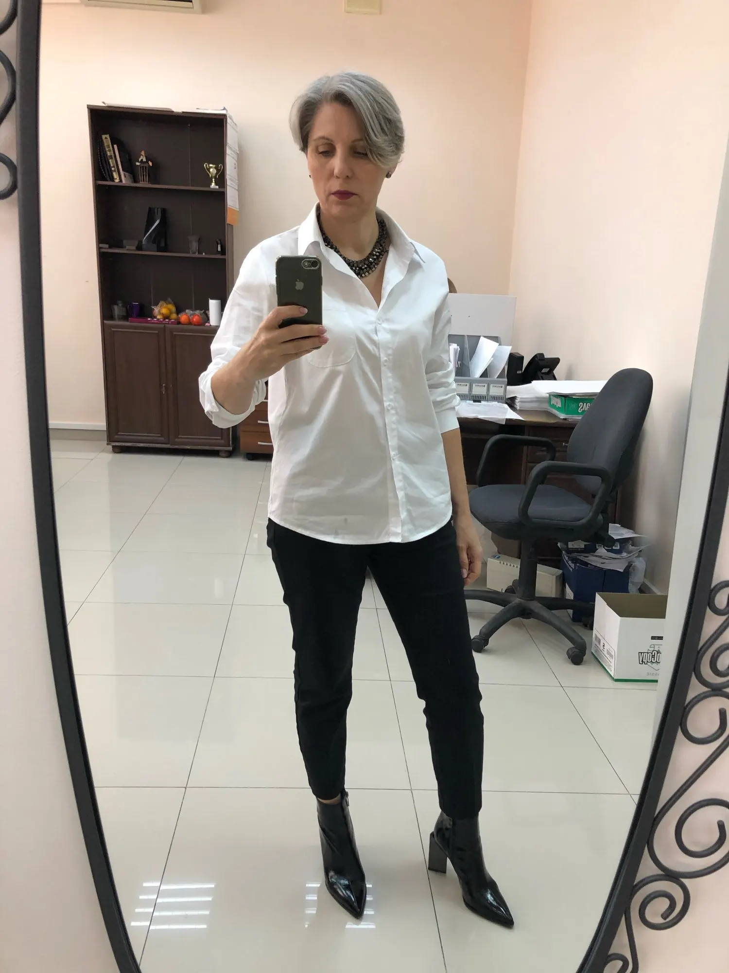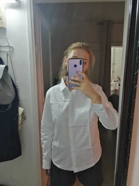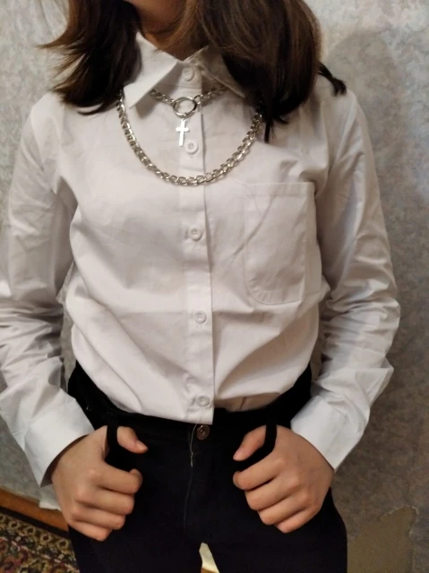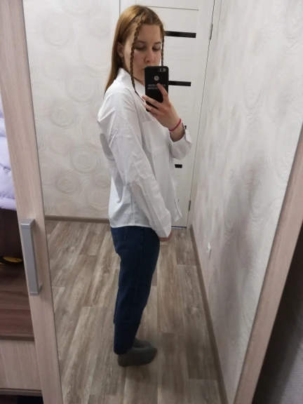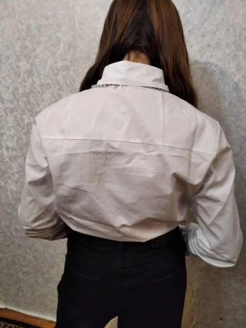 Отличная рубашка, думала будет больше, но сидит хорошо) Качество отличное, цвет кипельно белый как я люблю)