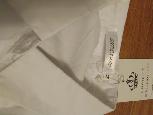 отличная рубашка! цвет истинно белый, ткань похожа на хлопок. По мне, зади не хватает выточек, но это дело поправимое. за такую цену отличное качество. ниток лишних не было. С продавцом не общалась. доставка до Спб долгая, почти два месяца, но это из-за объединения нескольких посылок.