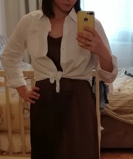 Рубашка хлопковая, плотная. Просвечивает совсем немного, видно, если только темный лиф. Из-за того, что хлопок, гладится сложно. На объемы 96-85-103 рубашка не овер сайз, просто свободная, нигде не тянет. В рукавах очень свободно. Не длинная. На рост 160, примерно, как не фото. Может чуть-чуть короче, но точно не длиннее.