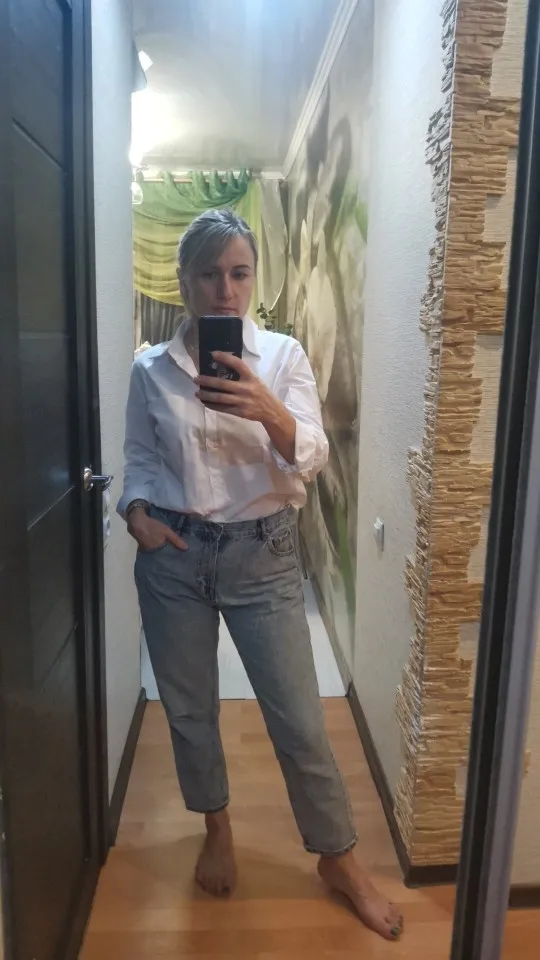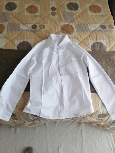 Дошла до Краснодара за 14 дней. Холодная рубашка, не греет, сильно мнётся, тяжело отпаривается. Покупала, чтобы носить с жилеткой. Заказала ХЛ, соответствует российскому Л, хотя я ношу 44-46.
