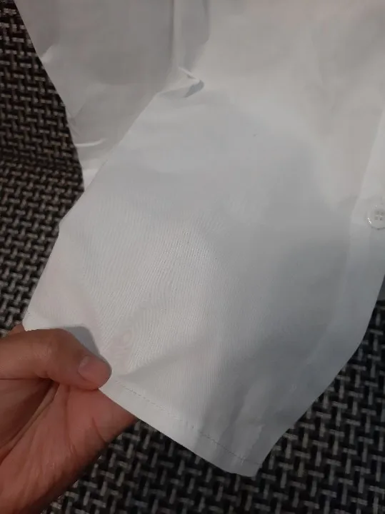 Рубашка неплохая, ткань не просвечивает, хороший белый цвет. никаких ниток, никакого запаха - рекомендую. На российский 46, рост 175 XL села как по размеру, не оверсайз, но длина рукава вполне себе нормальная, косточку закрывает. Если хотите, что бы было посвободней, выбирайте размер побольше
