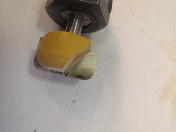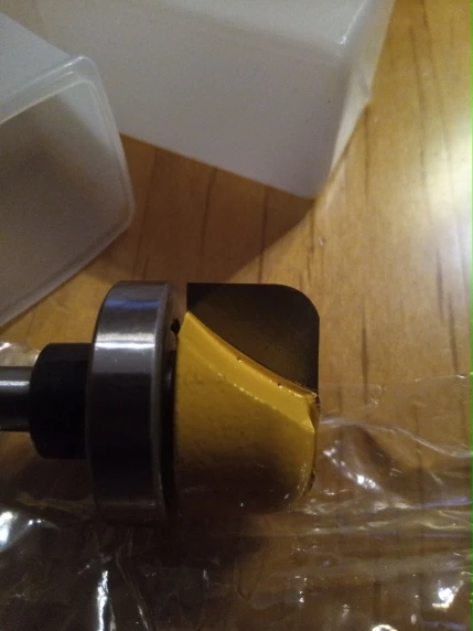 Наверное описанию все соответствует, но фреза сразу начала жечь древесину, через пару минут заклинил подшипник, фреза с подшипником грелись так что шаблон пластиковый плавился. Через несколько минут подшипник и вовсе рассыпался. Хватило на 10 минут работы по ясеню.