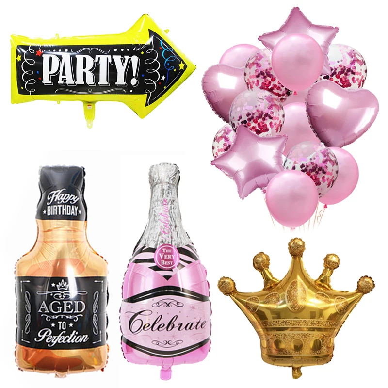 Бутылка вискишампанское, шары 18, 30, 40 лет, украшения для дня рождения, Корона короны короля для детей и взрослых, Свадебный шар