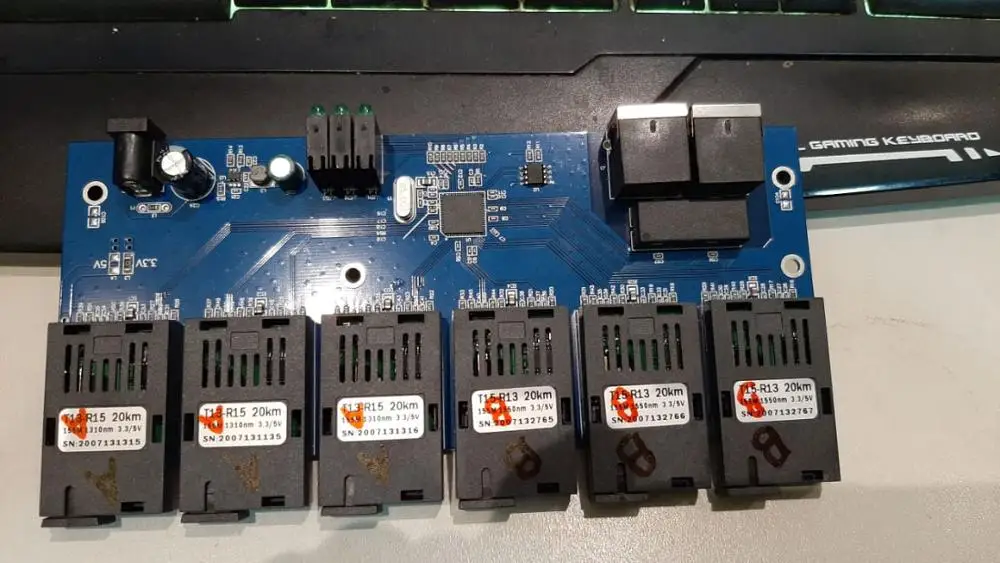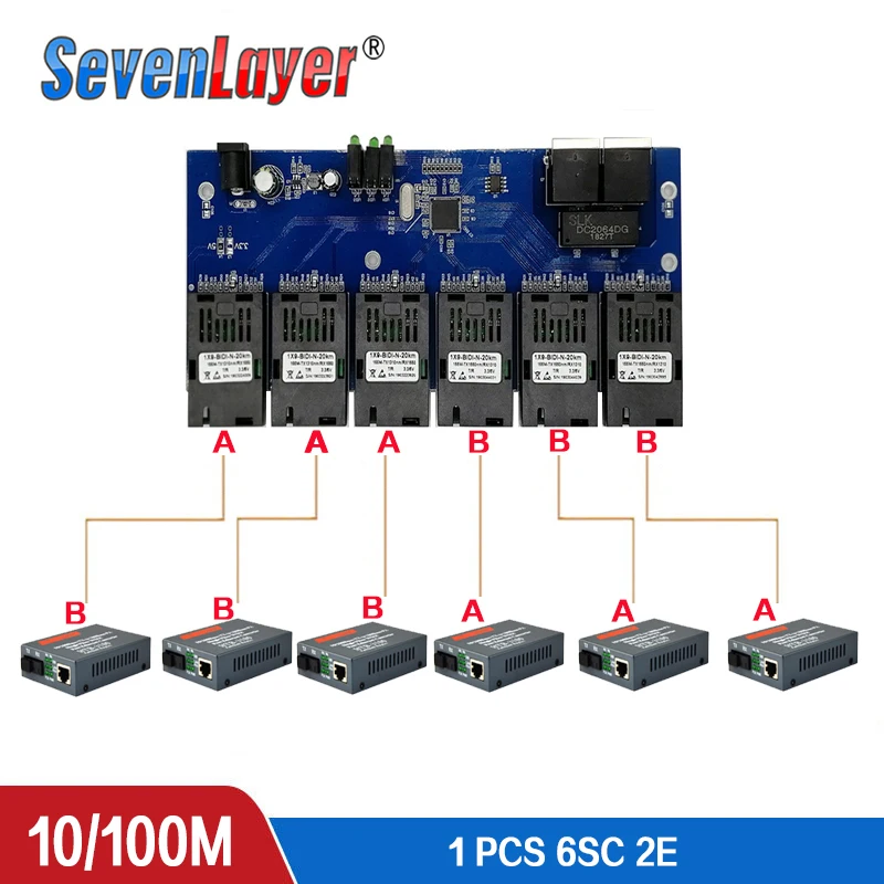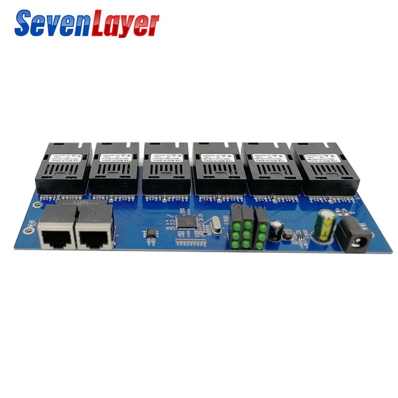 10100M 2 RJ45 6 155M SC волоконно-оптический преобразователь порта, коммутатор Ethernet, 6 sc 20KM, волоконно-оптический медиаконвертер PCBA