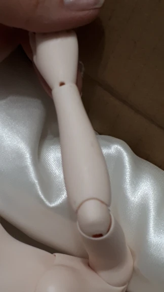 кукла сильно перетянута. коленные суставы от натяжения выпирают с задней части ноги. ноги сильно искревленны. запаса резинки для ослабленния нет.цвет больше розоватый, а не нормально бежевый. пальцы на кисти не до конца прорезанны.