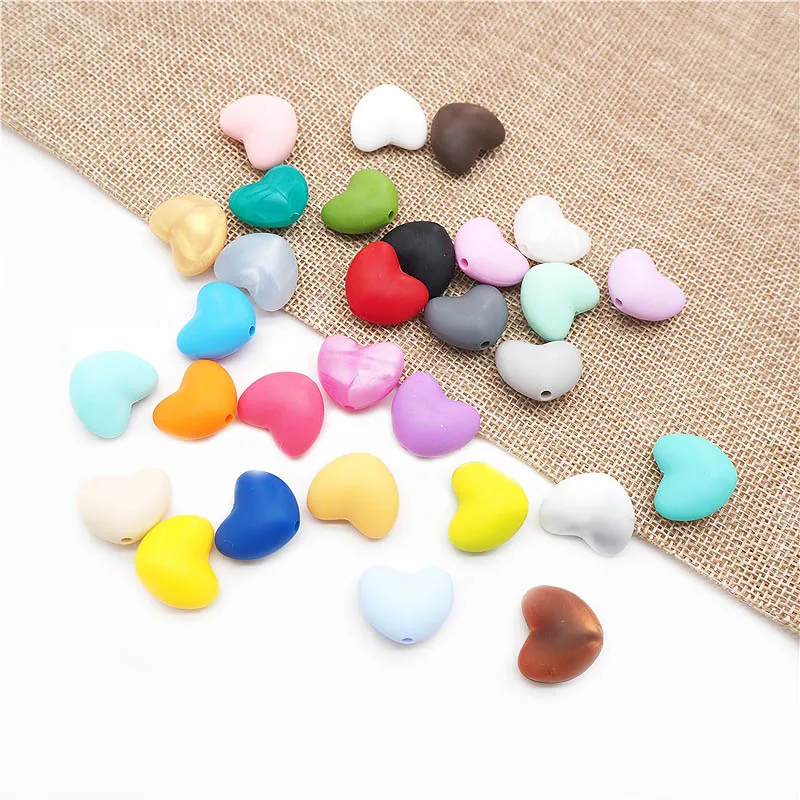 Силиконовые бусины Chenkai в форме сердца для прорезывания зубов, 50 шт., жевательные бусины в форме сердца для самостоятельного изготовления кулонов для ожерелий, браслетов, ювелирных изделий
