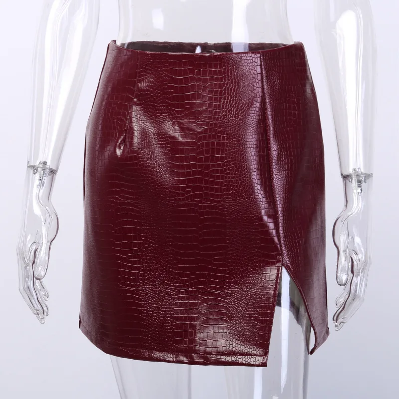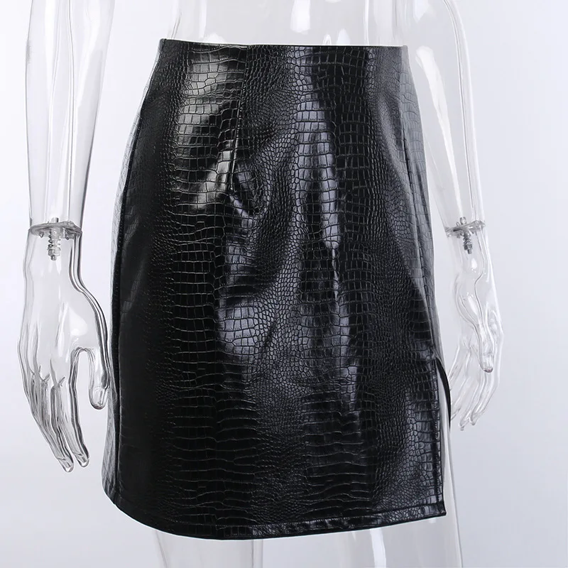 Женская мини-юбка из искусственной кожи с принтом крокодила и высокой талией, весна 2020