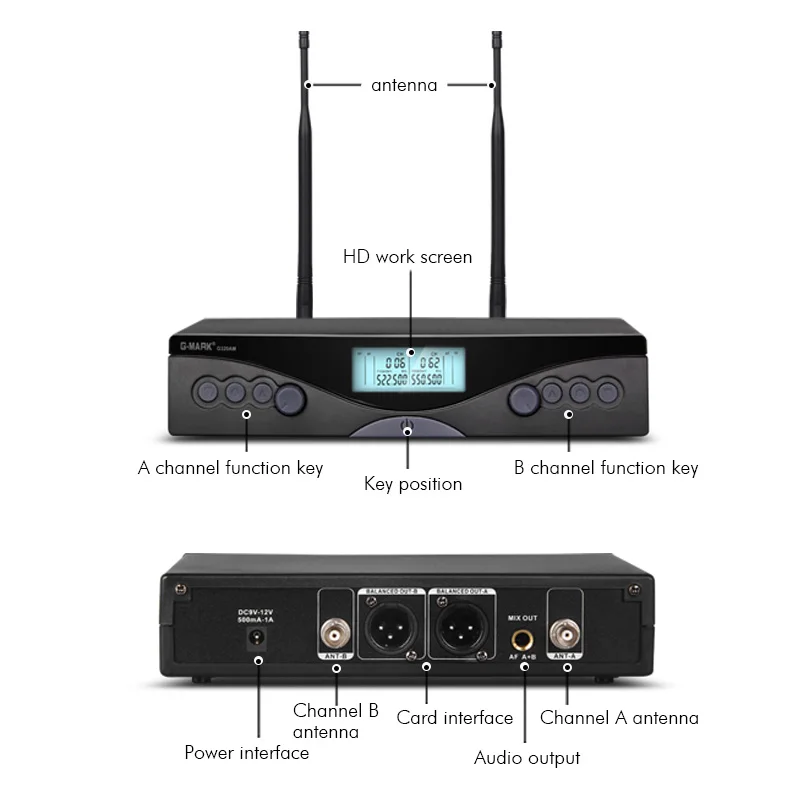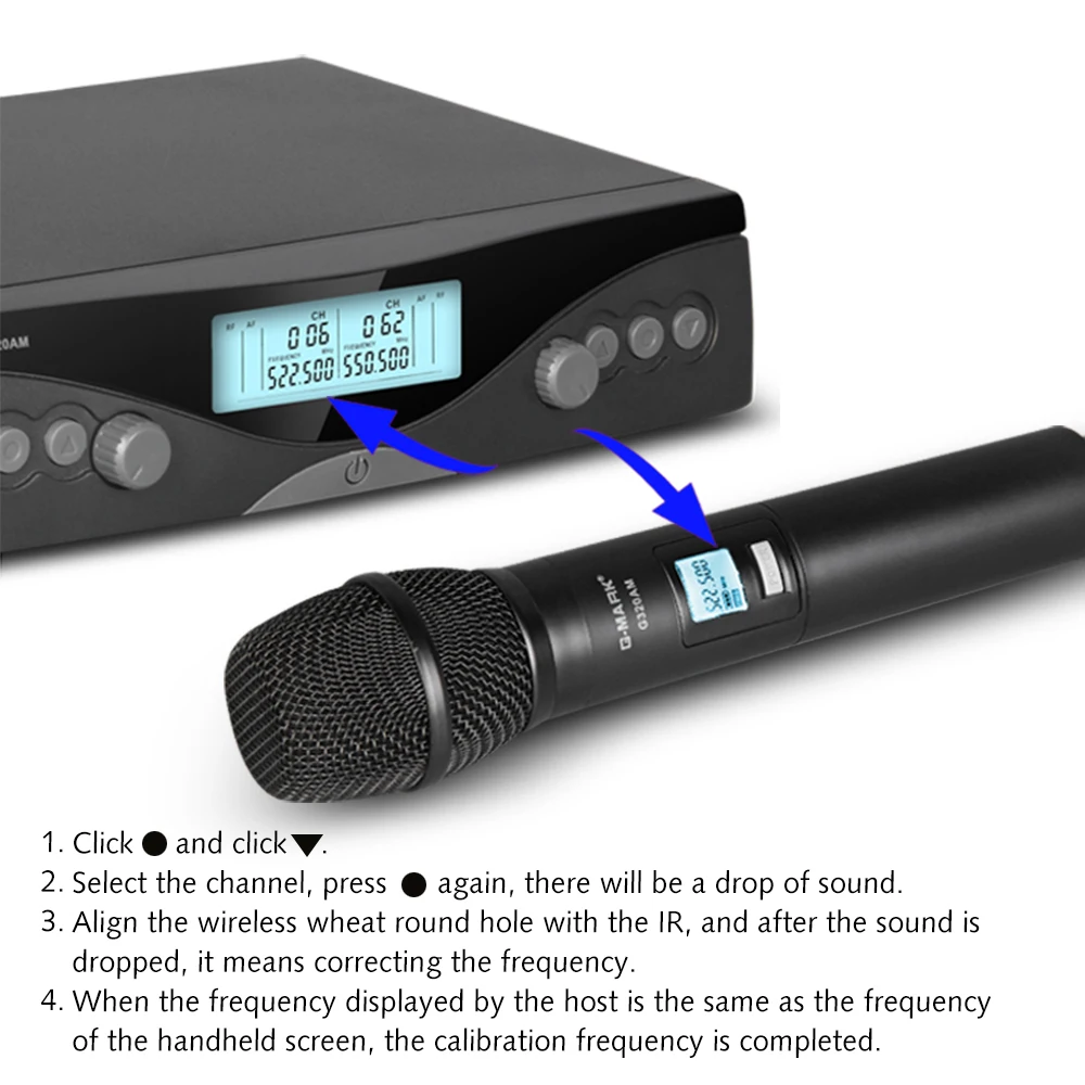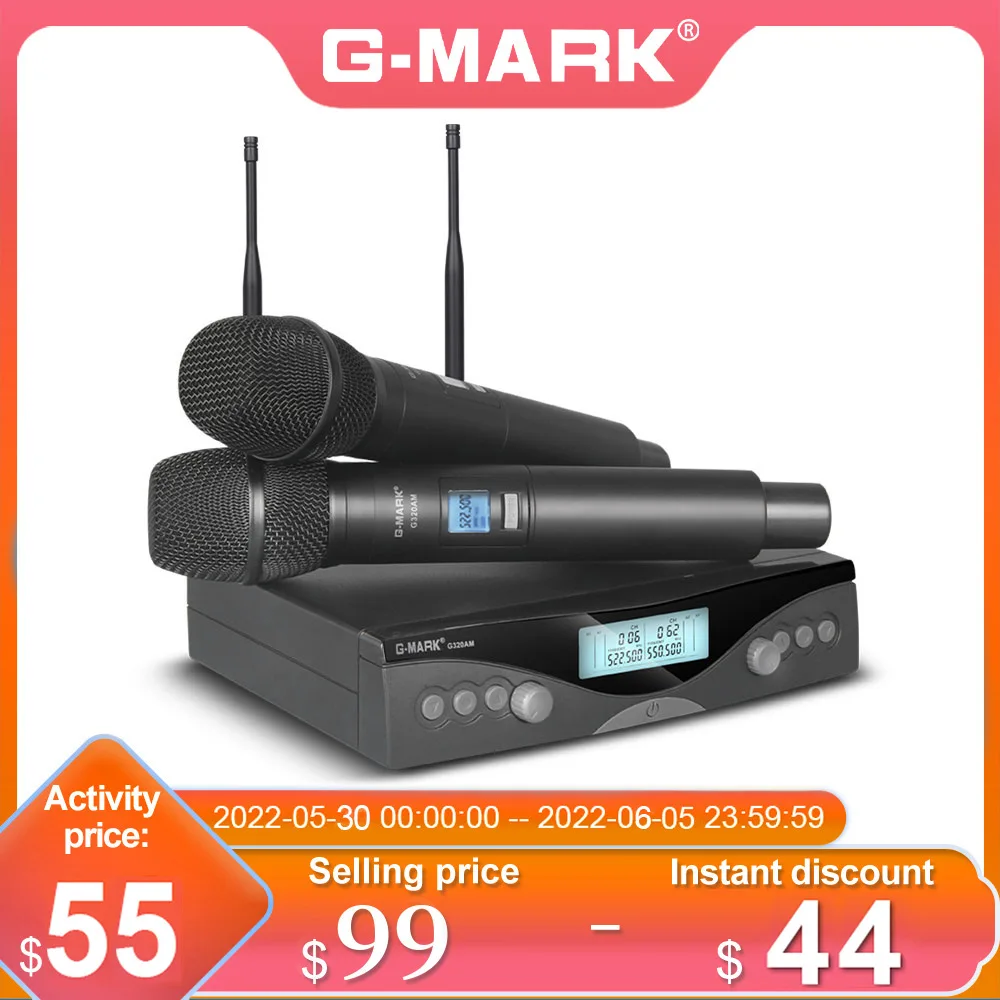 Беспроводной микрофон G-MARK G320AM, профессиональный, UHF, 2 канала, микрофон для караоке, ручной, автоматическая настройка частоты, 100 м