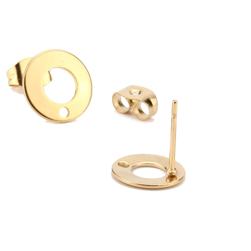 Stainless Steel 10mm Gold Ear Posts with Loops Hollow Round Geometric Stud Earrings Post for Earring Making Findings