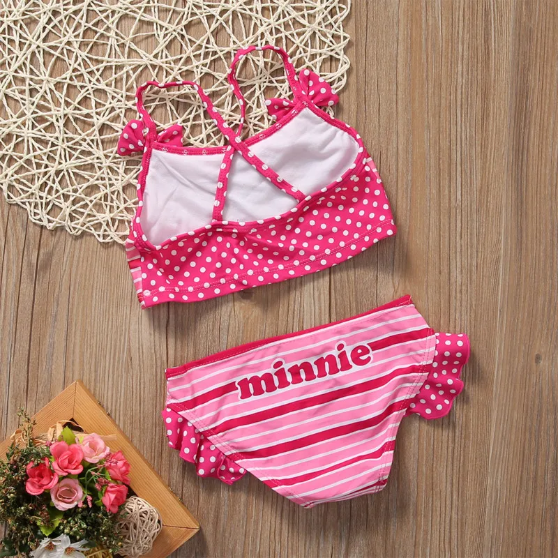 Комплект из 2 предметов для маленьких девочек; купальный костюм в полоску из двух предметов; купальный Купальник бикини для маленьких девочек; купальные костюмы в горошек