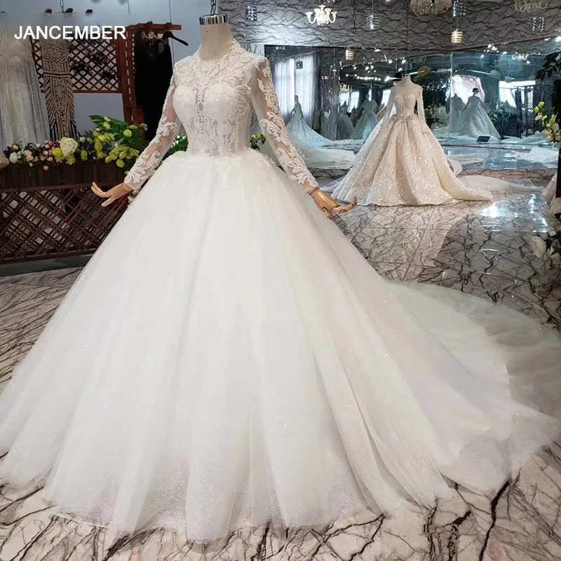 HTL362 мусульманское бальное платье, свадебные платья 2020 с длинным рукавом О-образным вырезом длиной до пола, красивые свадебные платья, как белые
