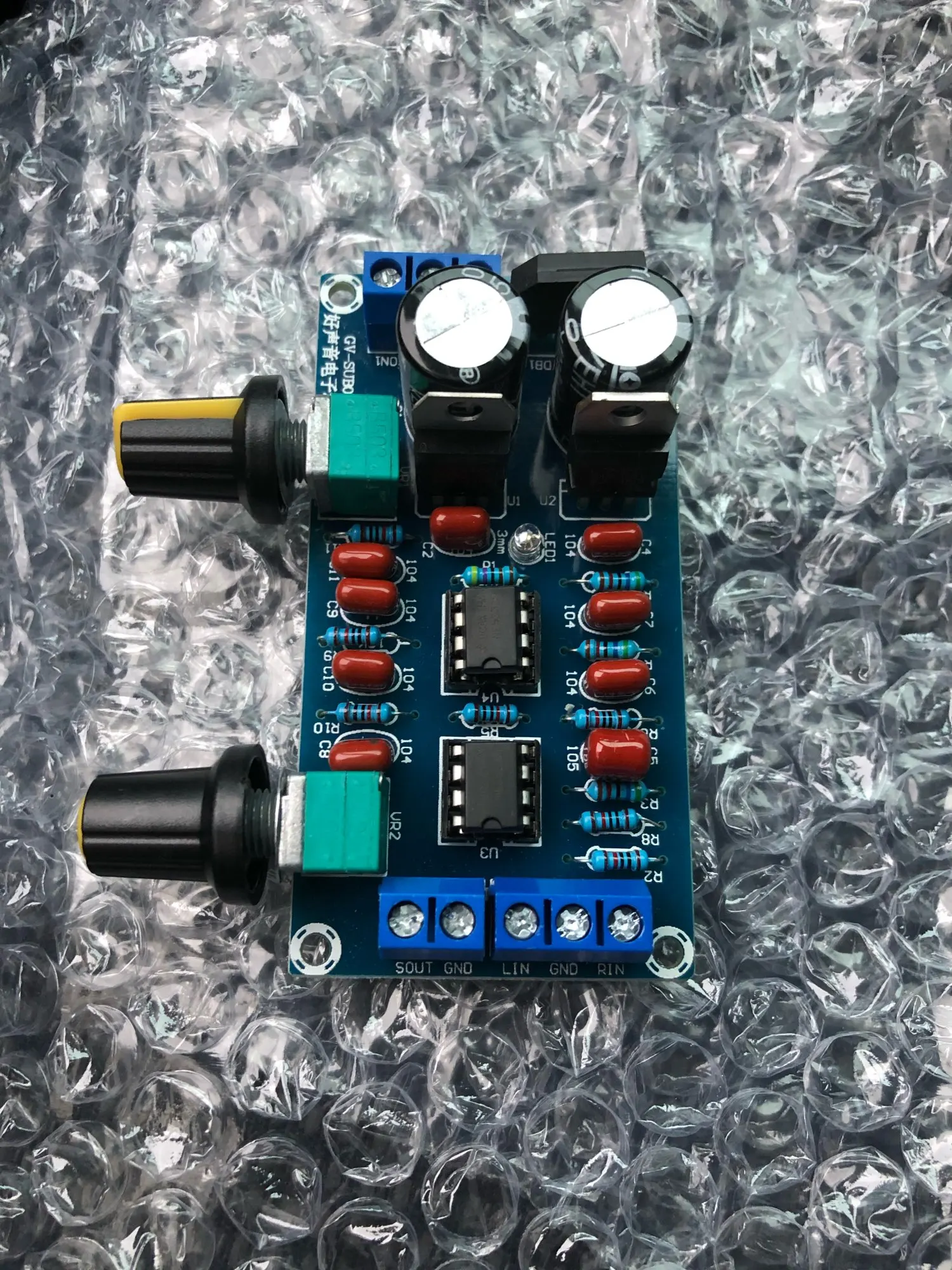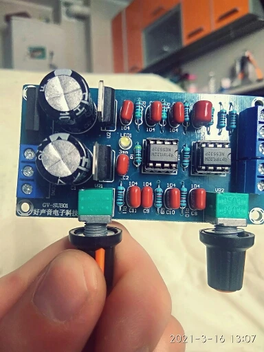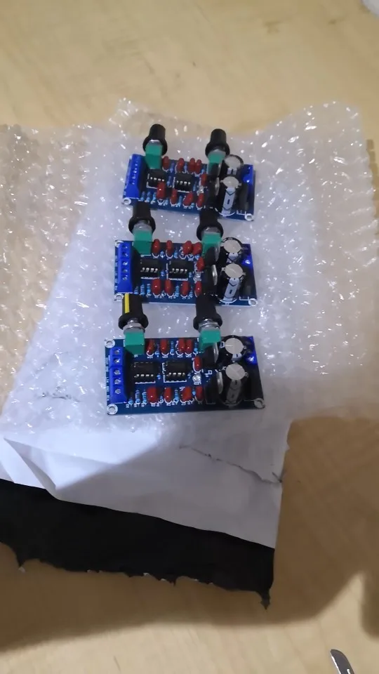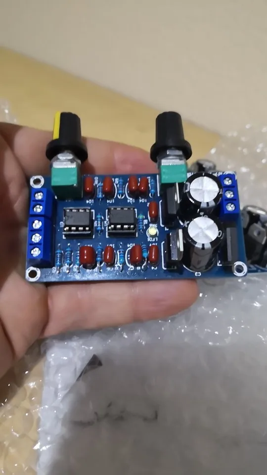 плата пришла быстро. в место ne5532 установили ne555 видимо по ошибке. я сразу не заметил. подключил и сразу же сгорели микросхемки и один стабилизатор. после замены и установки того что положенно было изначально ставить все заработало. минус в том что регулировка громкости происходит в последних 10% зоны регулировки резистора. ручки положили черные а не серебристые. Проверяйте свои платы до включения. Открыл спор на возврат половины суммы одобрили за пол дня.
