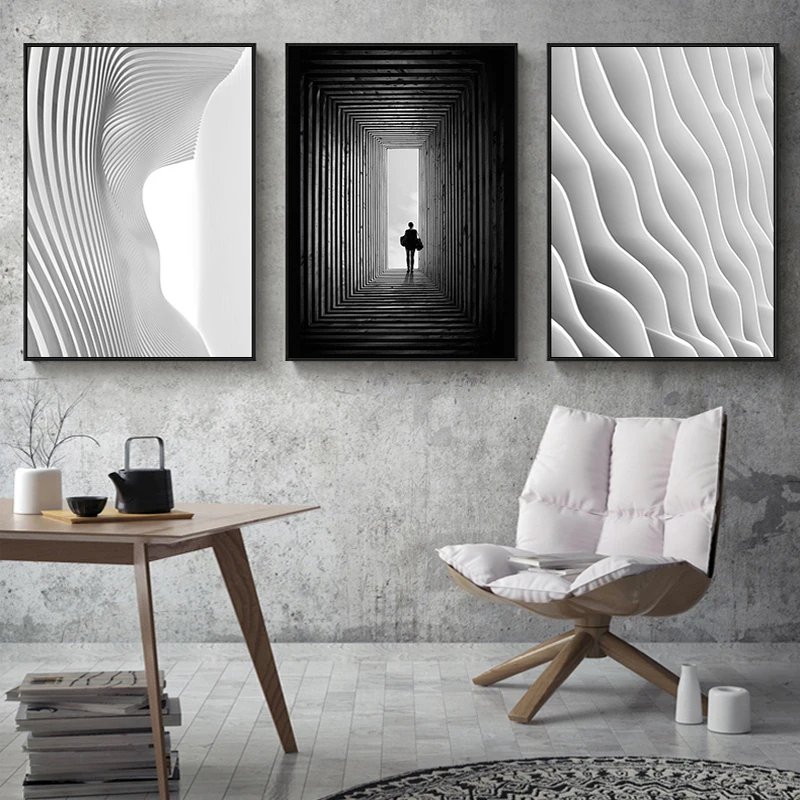 Настенная живопись в скандинавском стиле черно-белая Геометрическая...