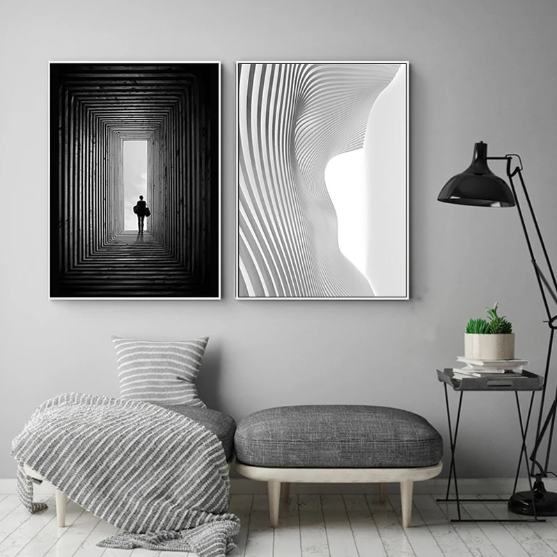 Настенные художественные плакаты с черно-белыми линиями в скандинав...