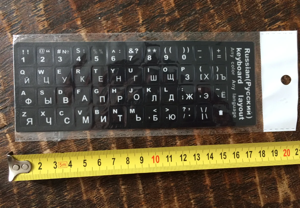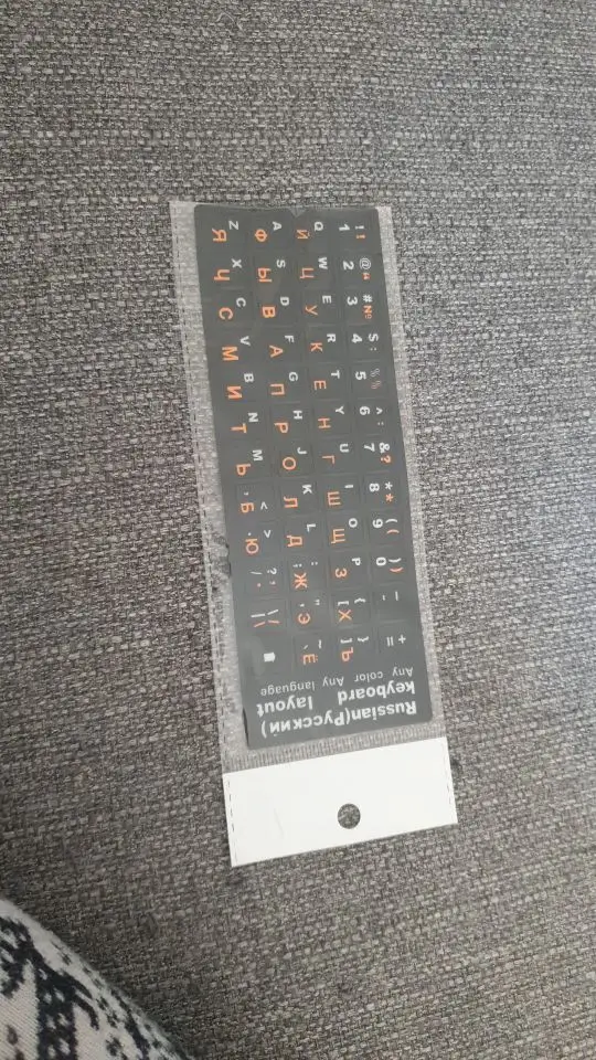 Хорошие наклейки на клавиатуру. Прочный материал. Просто наклеил его. Хорошо прилипает к клавиатуре. Спасибо вам