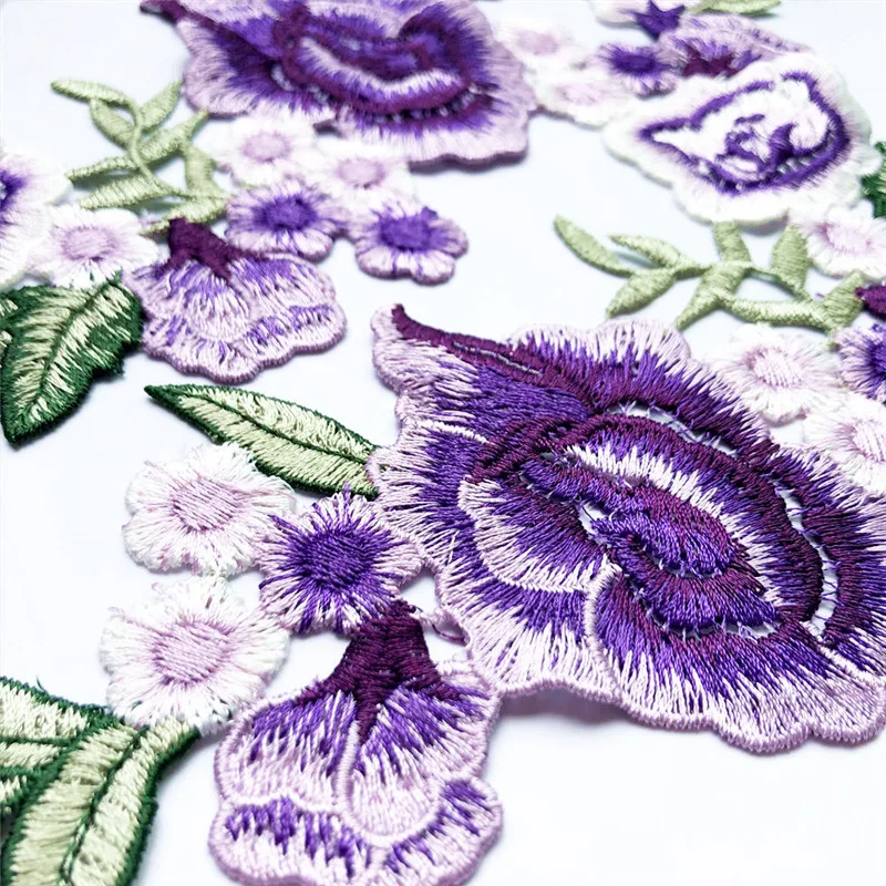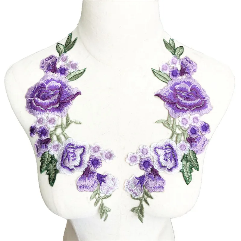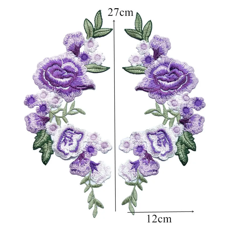Вышитые аппликации для свадебного платья, фиолетовые розы, цветы, пионы, 27 см, 2 шт.