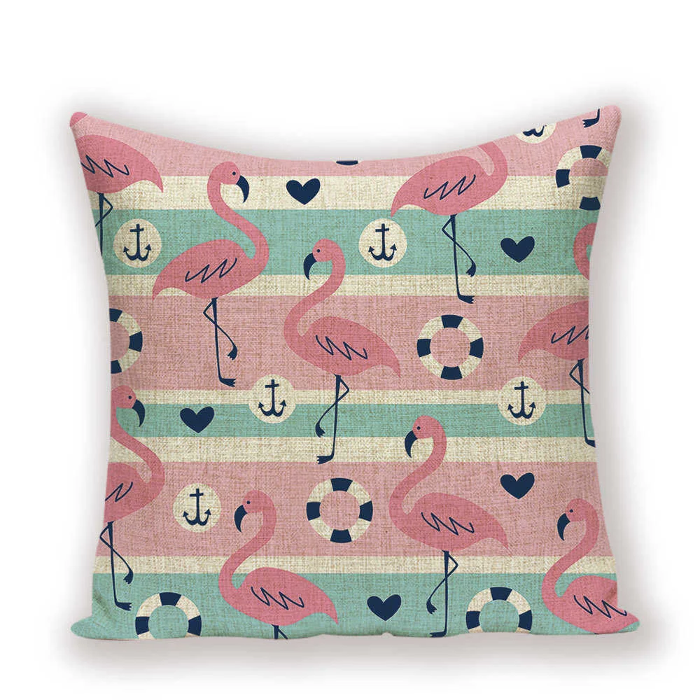 Тропический чехол для подушки с фламинго, льняная наволочка с зелен...