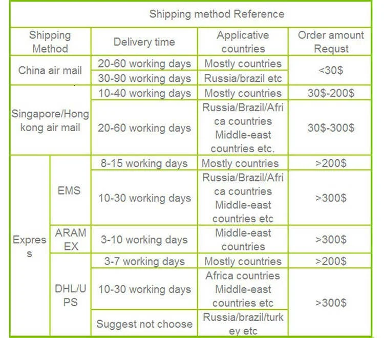 Если вы хотите обменять полученные Вами товары, пожалуйста, свяжитесь с нами в течение 7 дней с момента получения заказа.Вы должны оплатить дополнительные сборы и сохранить возврат товаров в первоначальном состоянии. Если продукт имеетПроблема качества, мы полностью вернем деньги. Мы гарантируем нулевой риск покупки. Поскольку ваши отзывы очень важны для развития нашего бизнеса. Мы искренне приглашаем васЕсли вы удовлетворены нашими товарами, оставьте нам положительный отзывы. Мы действительно надеемся, что вам понравится.Если вы не удовлетворены этим, пожалуйста, напишите нам. Мы сделаем все возможное, чтобы обслуживать вас в течение 24 часов