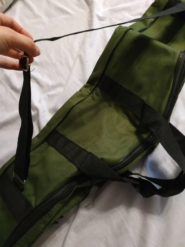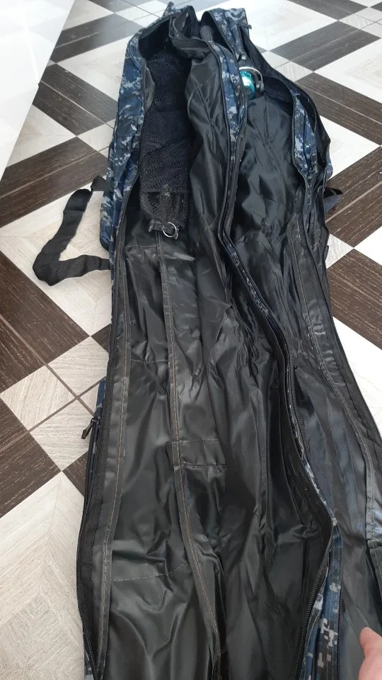 Сумка космос! Вошло 3 фидера с катушками, 2 спиннинга, 2 удочки, всякой мелочи по карманам и ещё место осталось! Нет ни одной торчащей нитки. Доставка за 9 дней. Замки все целые. Защитный слой тоже цел. Есть запах. Зимой будет стоять на балконе. Ручки немного не сбалансированы (но это терпимо). Рекомендую и товар и продавца