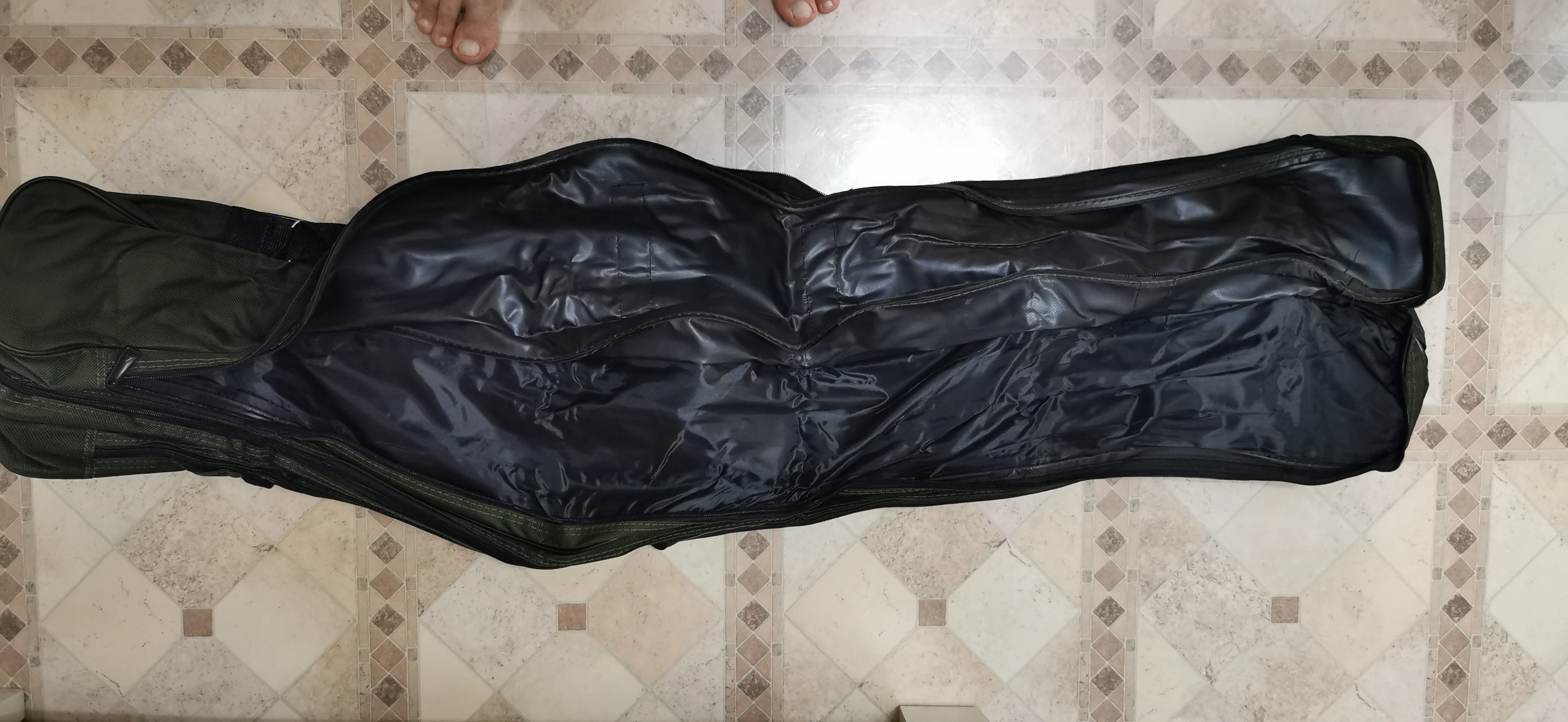 Отличный чехол. Все аккуратно и качественно прошито. Доставил курьер. Свободно поместились 3 фидера с катушками и подсак.