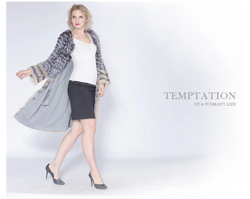 Женская Шуба из натурального меха, Весенняя вязаная шуба большого размера