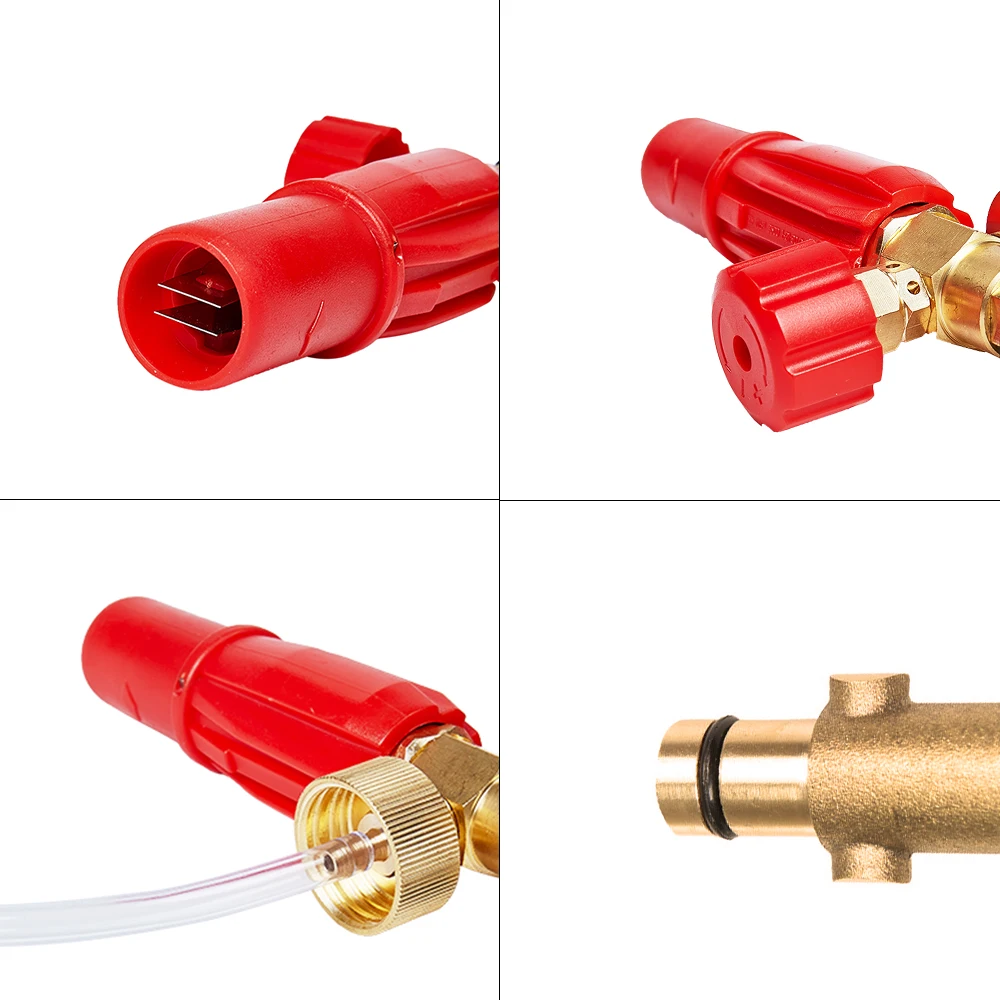 Технические характеристики:• Диапазон давления: 2000 - 5000 psi• Гарантия: 1 год (за исключением сетчатого фильтра внутри)• Емкость бутылки: 1000 мл (1 л)• Материал конструкции: твердая латунь, устойчивый нейлон, HDPE бутылка• Максимальная температура воды: 60 °C (140 °F)• Химическая стойкость: Да• Расход пены регулируется: Да• Регулируемая ширина распыления: Да Примечание:100% послепродажное обслуживание гарантировано навсегда. Посылка включает в себя:2 х разъем1 х пластиковых труб1 x схема установки1 x латунный генератор пены тела1 x пенная бутылка для мытья автомобиля Инструкции по использованию:1. Поместите PTFE ленту на латунную трубку (две нити). Каждая нить требует 50 см PTFE ленты.2. Поместите адаптер с латунной трубкой и всасывающей трубкой на пенопластовое устройство.3. Заполните бутылку жидкости с нужным количеством шампуня.4. Заполните бутылку с водой (для достижения наилучших результатов рекомендуется использовать теплую воду, 20% шампуня + 80% воды).5. Встряхните бутылку жидкости, чтобы тщательно смешать шампунь с водой.6. Прикрепите бутылку жидкости к пенопластовому блоку.7. Прикрепите адаптер к пистолету для мойки под давлением, а затем он готов к использованию.