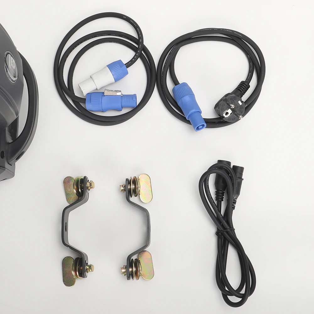 7. Каждый светильник имеет 1 кабель powercon, 1 кабель powercon, 1 кабель dmx, 2 быстрых замка для основания светильник:
