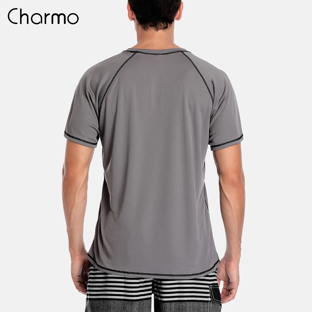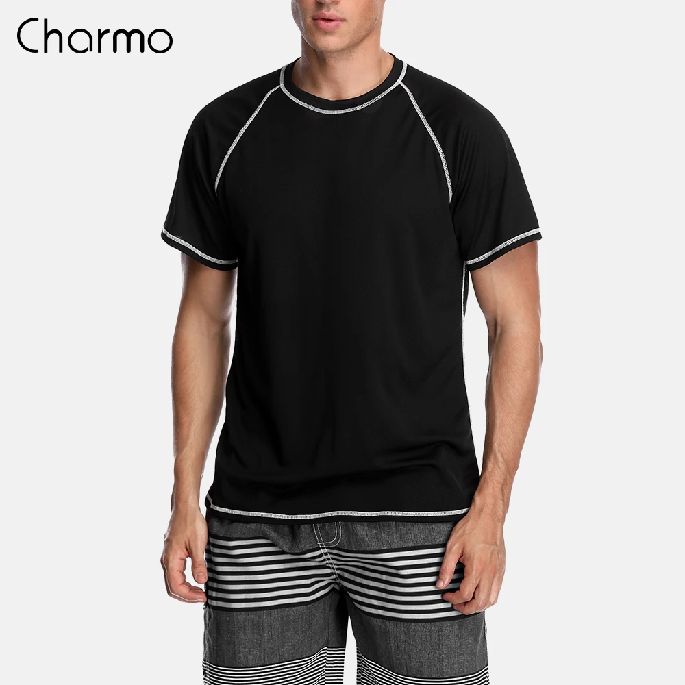 Мужская короткая рубашка Charmo для дайвинга, спортивный топ для серфинга UPF 50 +, дышащая Рашгард, пляжная одежда