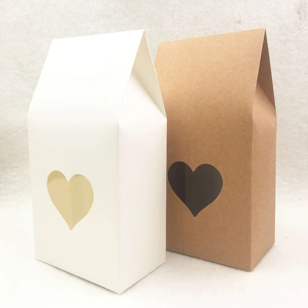 30 шт.лот 8x5x16 см крафт-бумажные пакеты коробки с ПВХ сердцем и окном для упаковки ювелирных изделий рождественские Apple Свадебные Сумки Подарочные для конфет