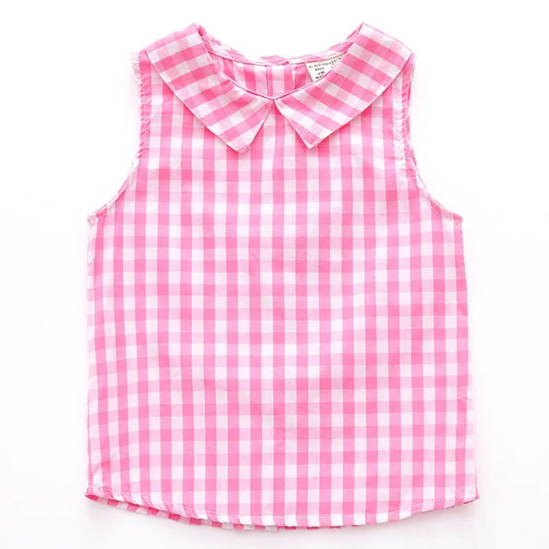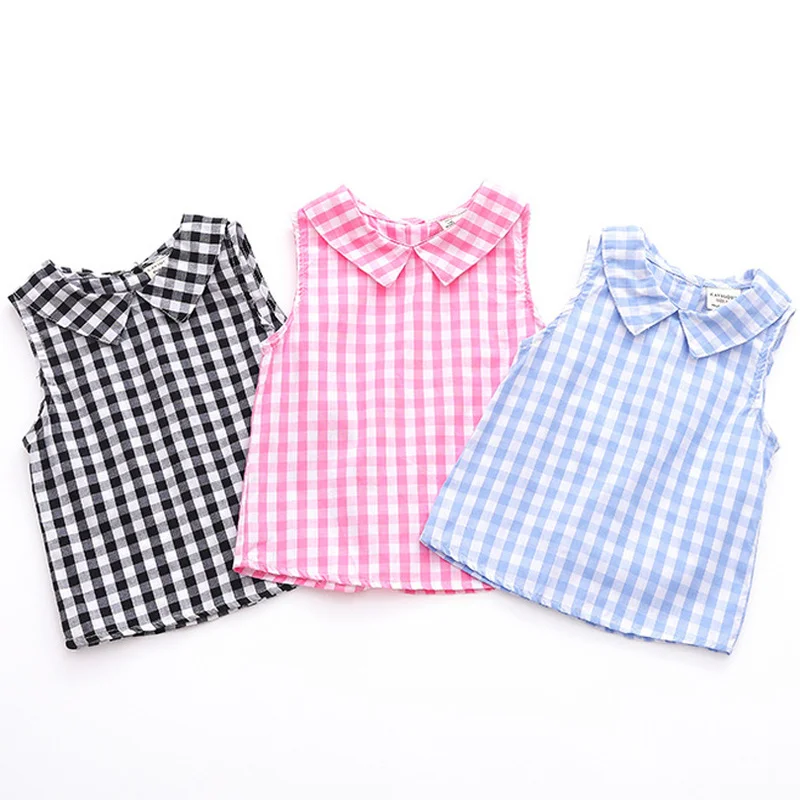 Летние блузки без рукавов для девочек, топы, хлопковые повседневные однотонные рубашки для маленьких девочек, детская одежда, рубашки, платье